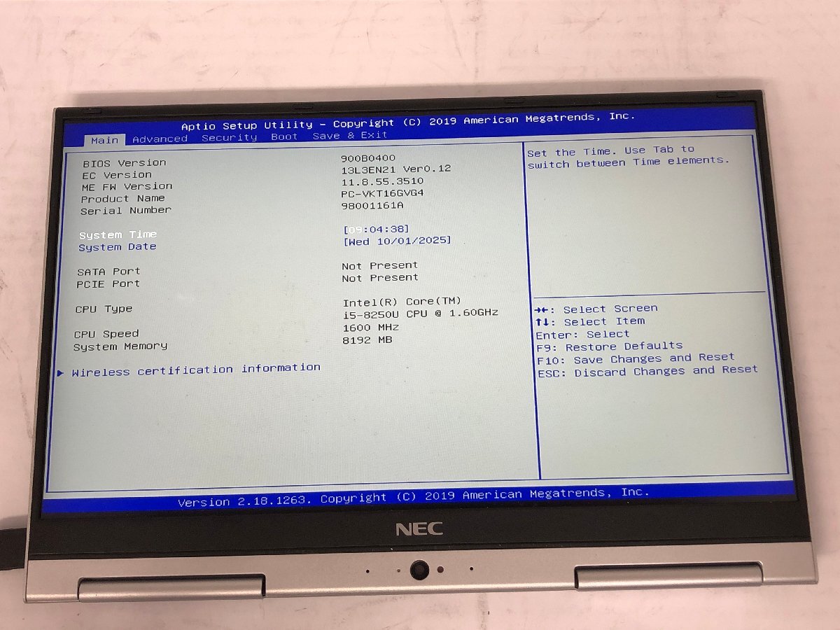 ジャンク/ NEC PC-VKT16GVG4 Intel Core i5-8250U メモリ8.19GB ストレージ無し 【K22109】