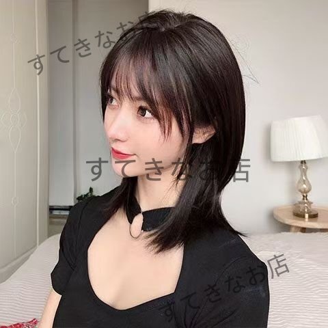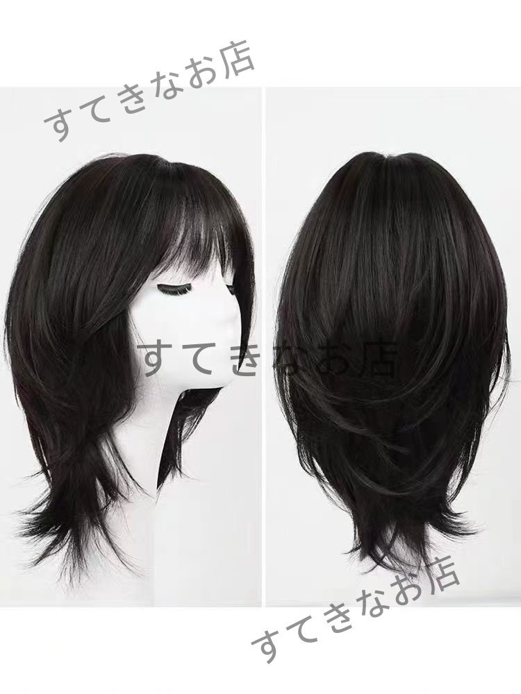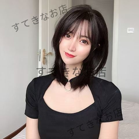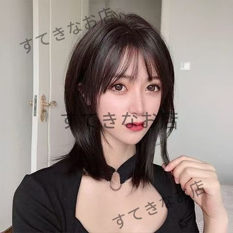 稀少美品★人毛 フルウィッグ セミロングストレート ショート サラサラ