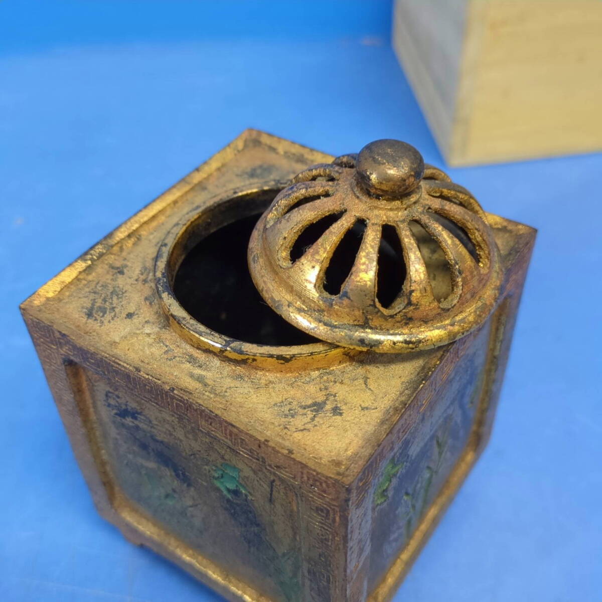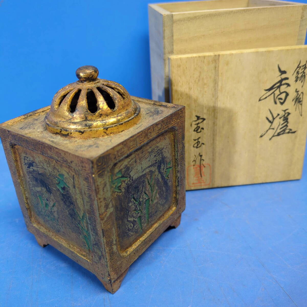 kankando『宝玉 鋳銅 香爐』8cm×8cm×高11.5cm 共箱《真作》味わい深いです!