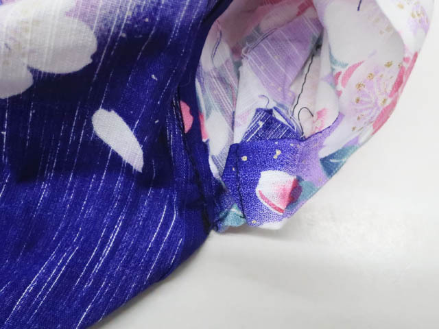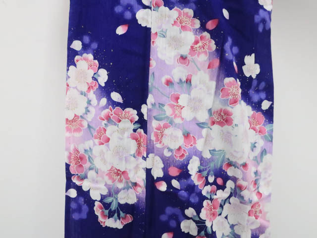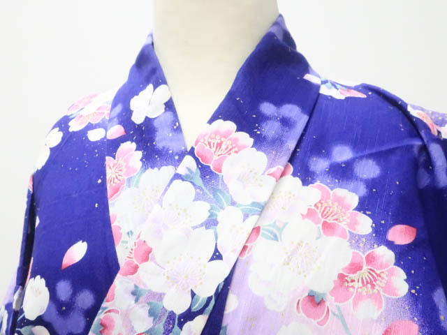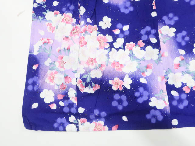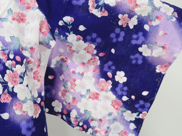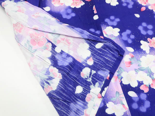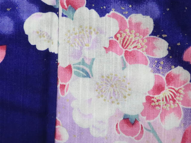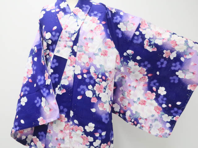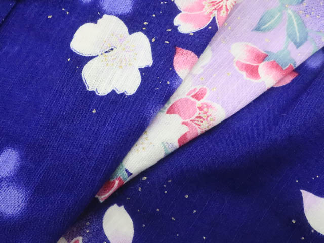 リサイクル商品のため、右衿先裏に糸解れがございますが着用可能なお品です。 地色は 青紫です。 1枚目の画像が近いお色かと思われます。 素材は綿です。 |