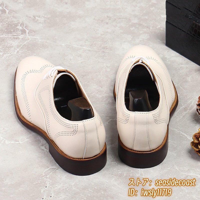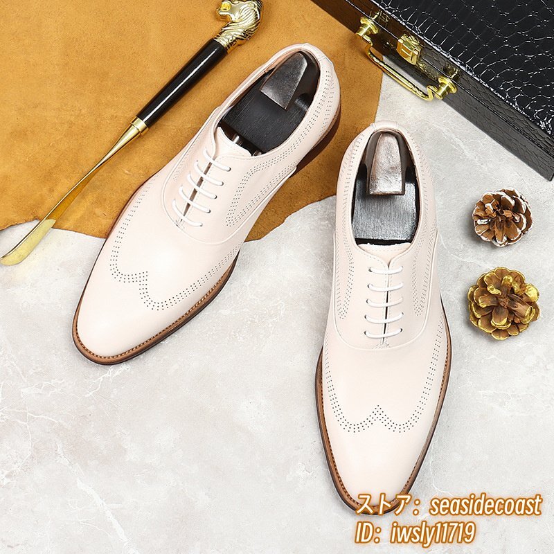 超希少◆ビジネスシューズ メンズ 通気性 本革 レザーシューズ 職人手作り 牛革 紳士靴 革靴 透かし彫り メッシュ 超軽量 ベージュ 27.0cm