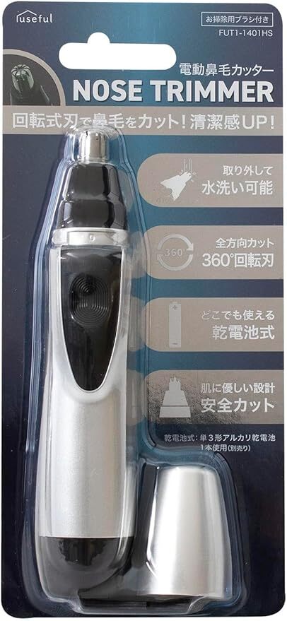 Amazon | 電動鼻毛カッター 乾電池式 エチケットカッター メンズ 眉毛 ヒゲ 耳 ステンレス刃 刃部分のみ水洗いOK 360度カット キャップ付 メンテナンスブラシ付属 肌にやさしい設計 富士
