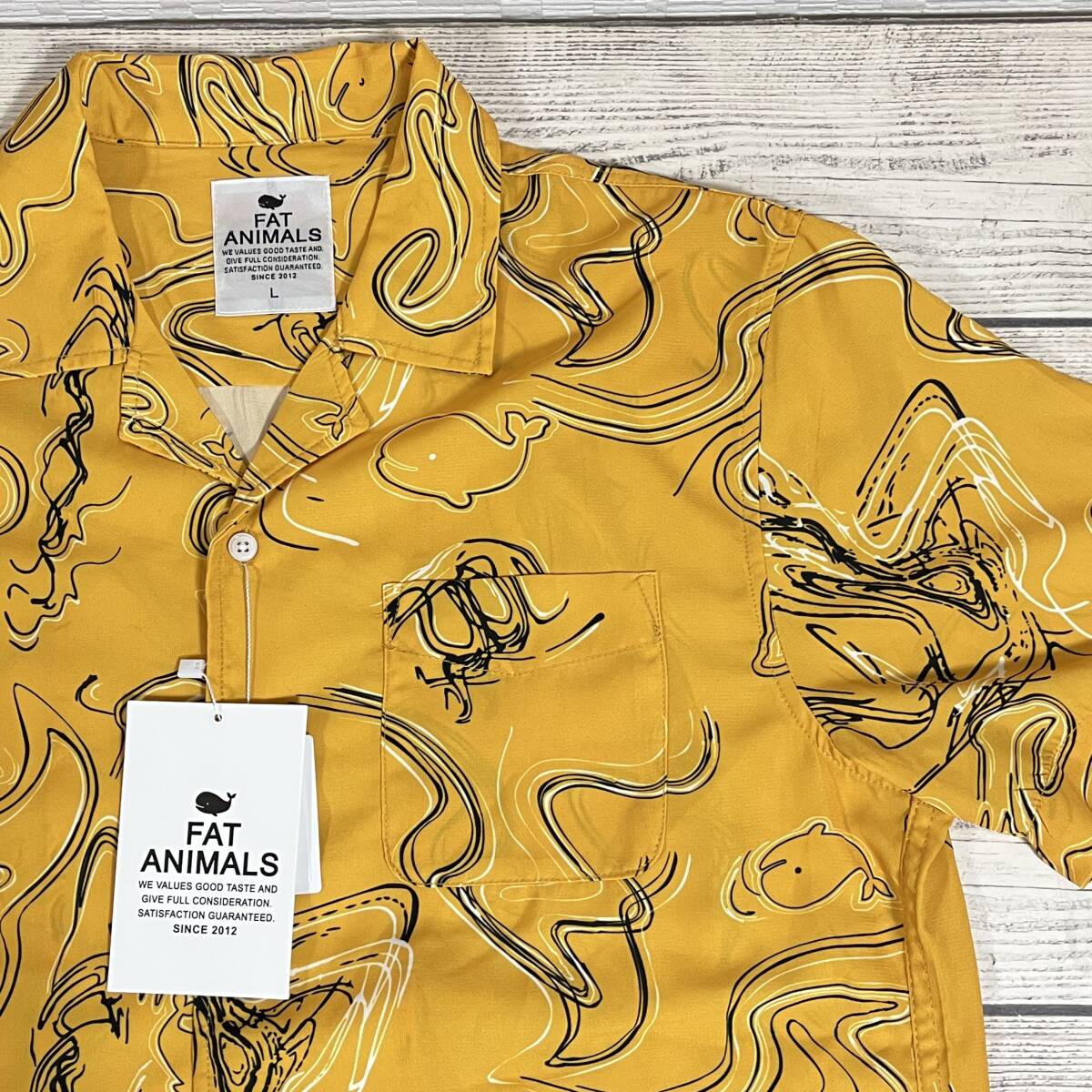 ★ Fat Animals (ファットアニマルズ) ★ Lサイズ 黄色 アロハシャツ オープンカラーシャツ 開襟シャツ くじら (タグ付き新品未着用)
