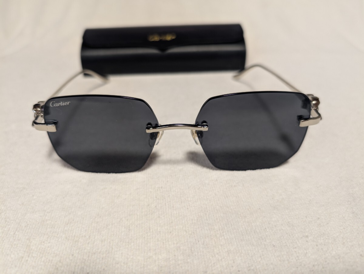 超美品 Cartier カルティエ サングラス ブラック シルバー メガネケース付き 未使用に限りなく近い