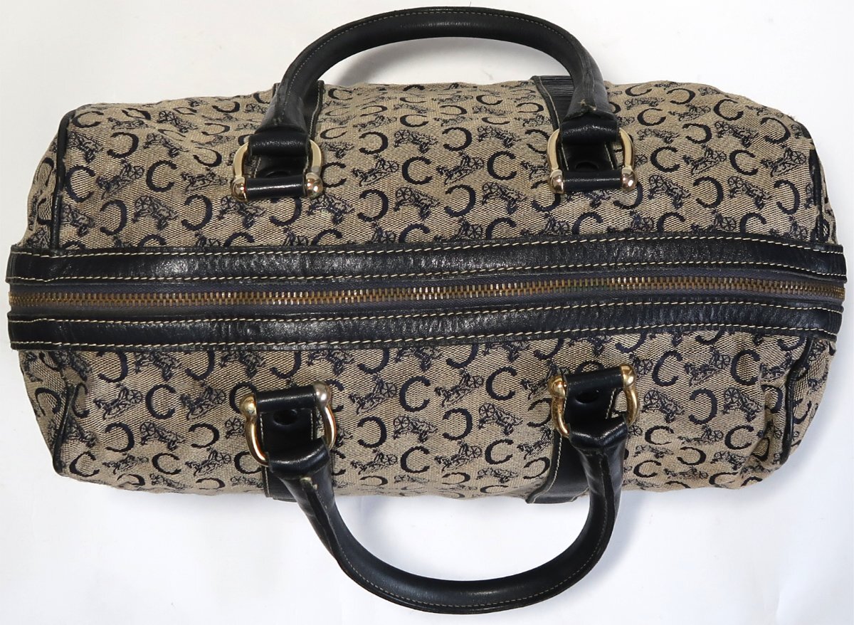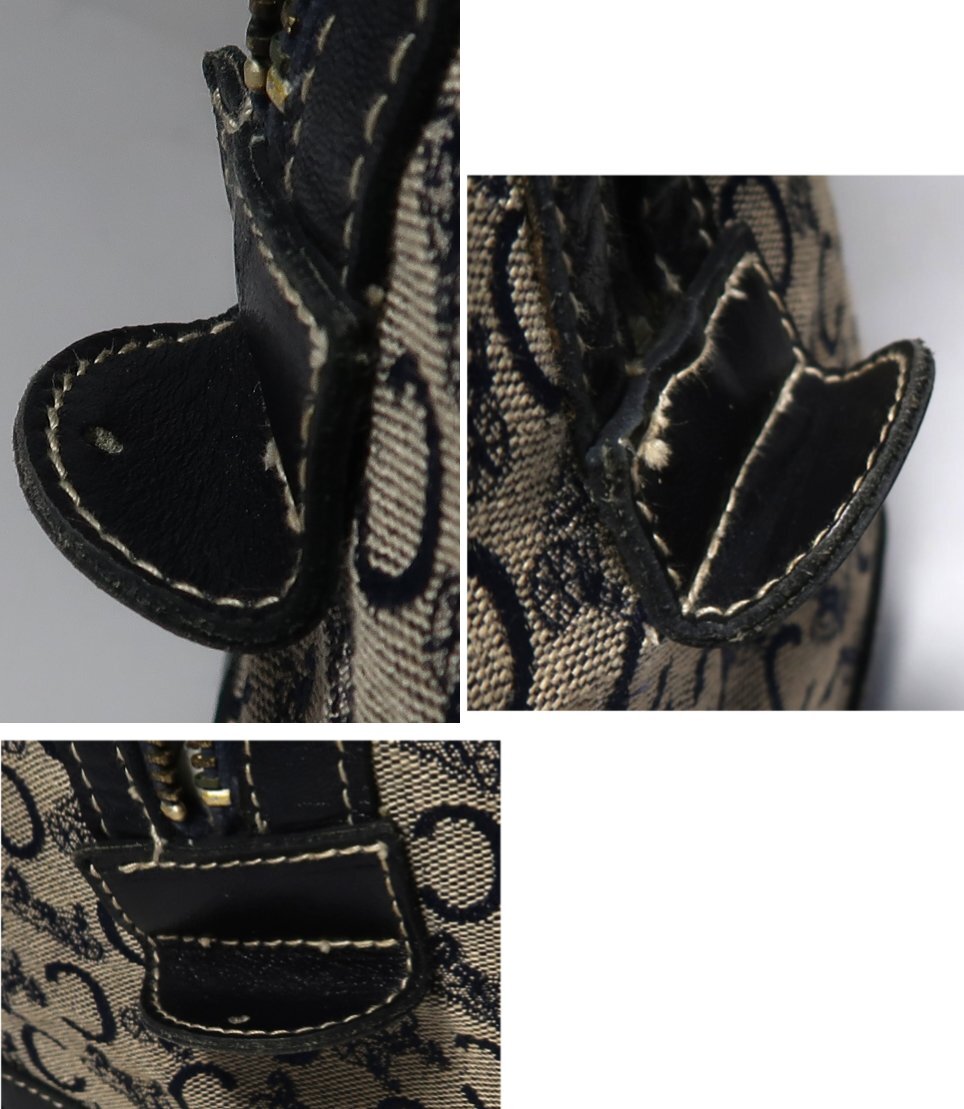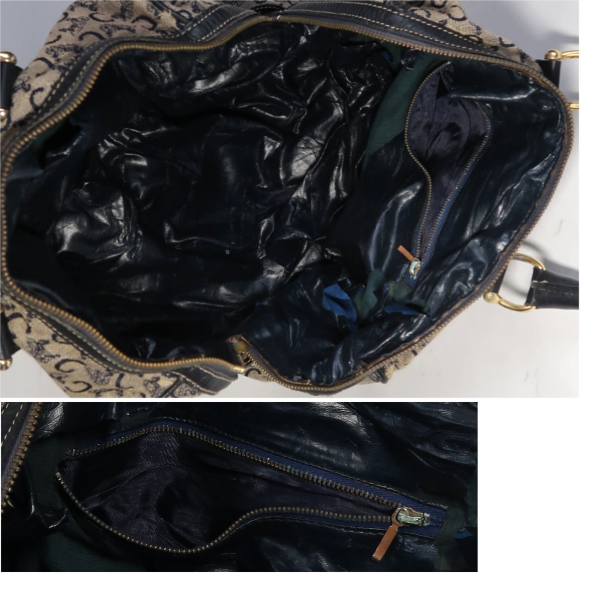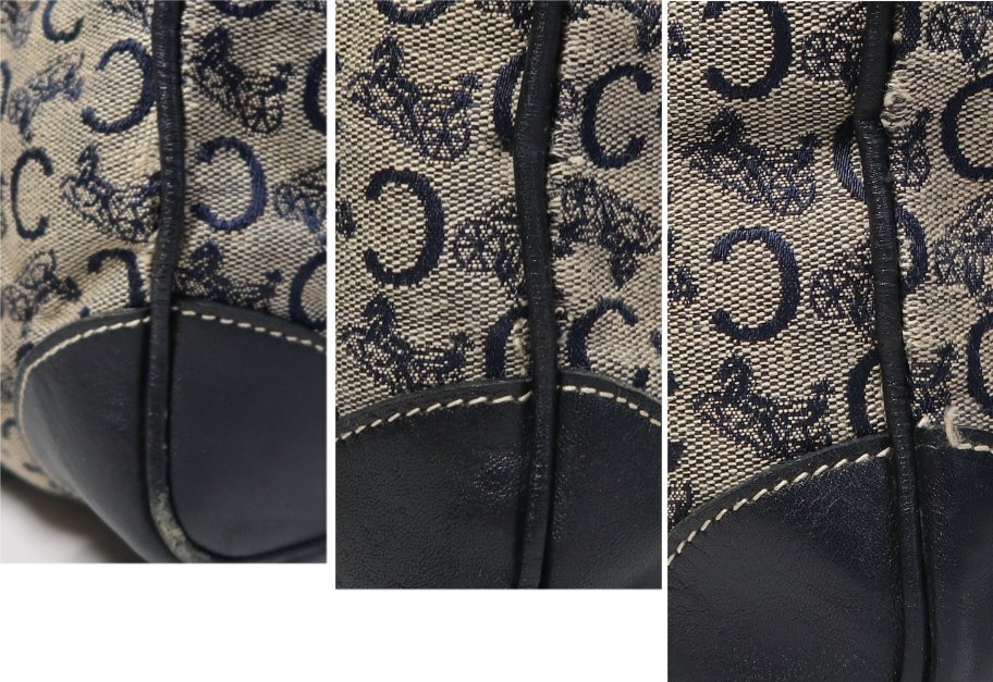 出品は画像のバックのみです。使用品ですので汚れや擦れはあります。サイドのレザーのつまみが折れ曲がっています。金具メッキの色落ちがあります。デニム地に綻んでいる箇所があります。またデニム地はオリジナルの色からは変色しているか全体的に汚れがあると思われます。内張に破れがあります。このままでも使用可能ですが、気になる方はご自分でご対処ください。内張についているファスナーポケットは使用可能です。サイズはW35xH22xD18cmくらいです。