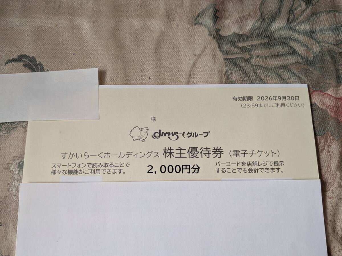 すかいらーくグループでご利用いただける株主優待券(電子チケット)2000円分です。 ご利用方はHPでご確認願います。 シリアル番号、PIN番号のご連絡のみ(発送はなし)であることご了承願います。 | |