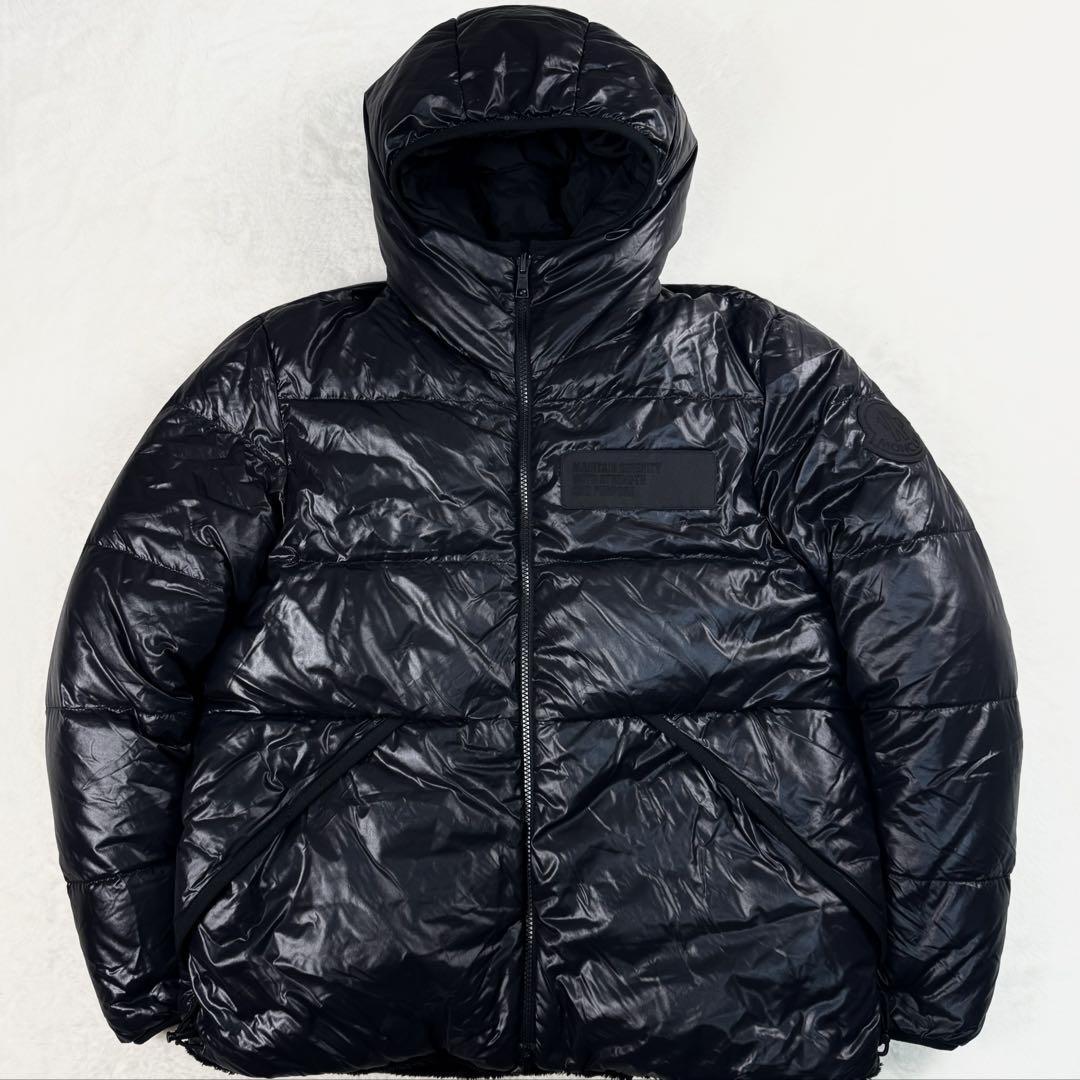 ダウン面:キルティング加工とコーティング加工をほどこしたナイロン サテン。カラーはブラック。