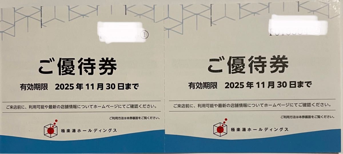 株主優待 極楽湯 入館引換券 2枚(2名様分) 有効期限:2025年11月30日