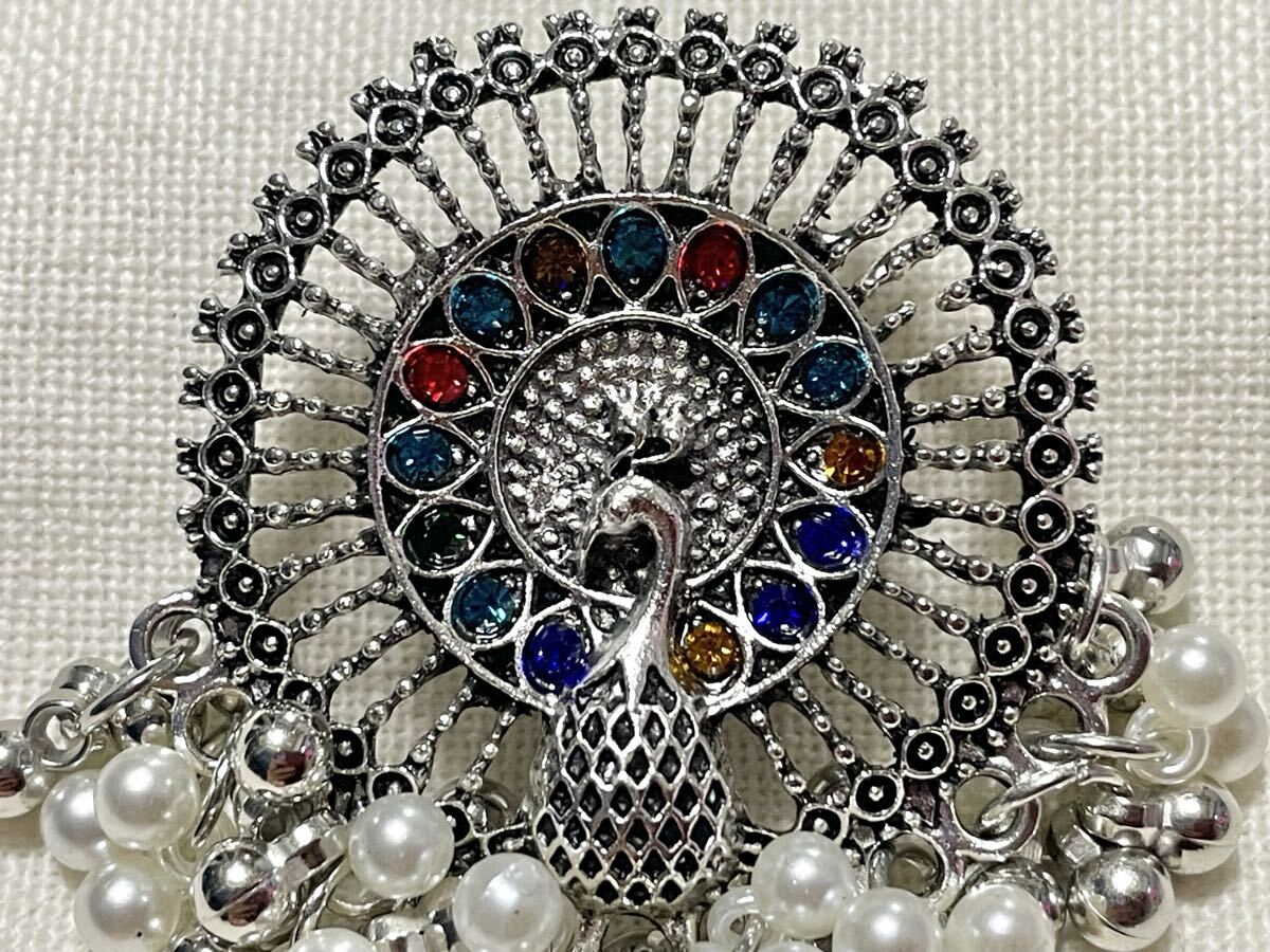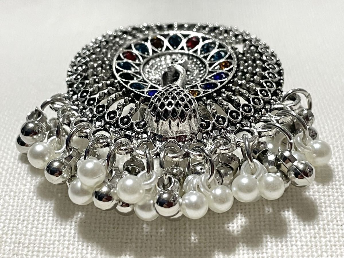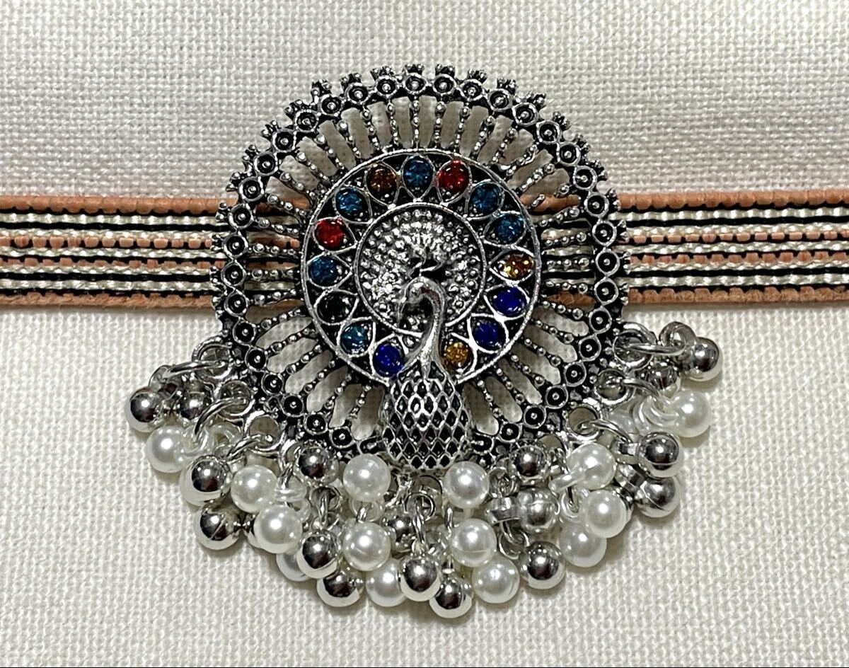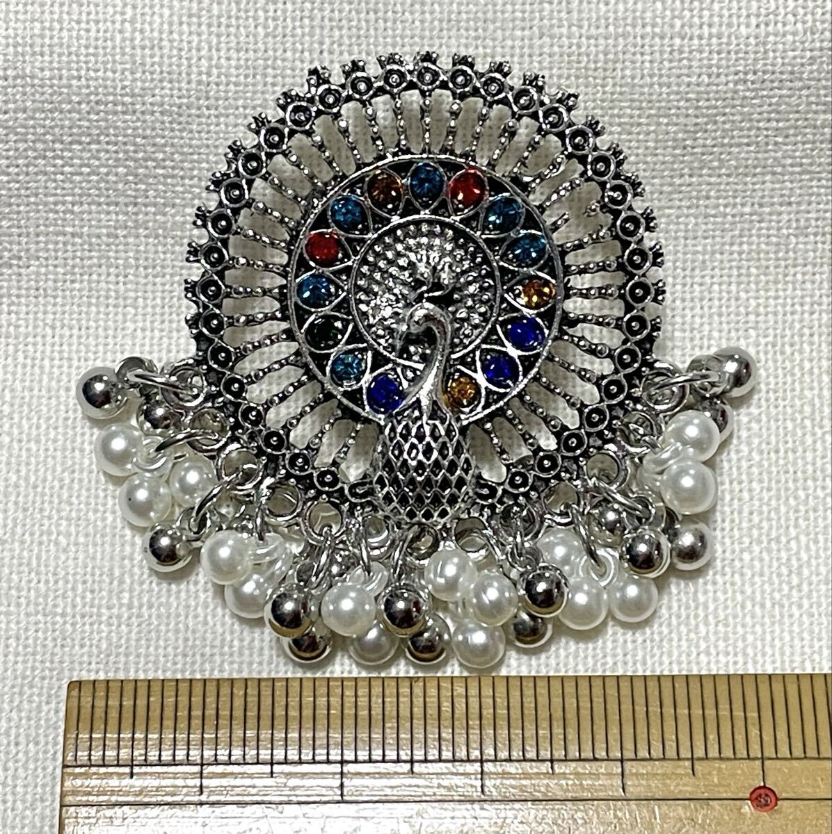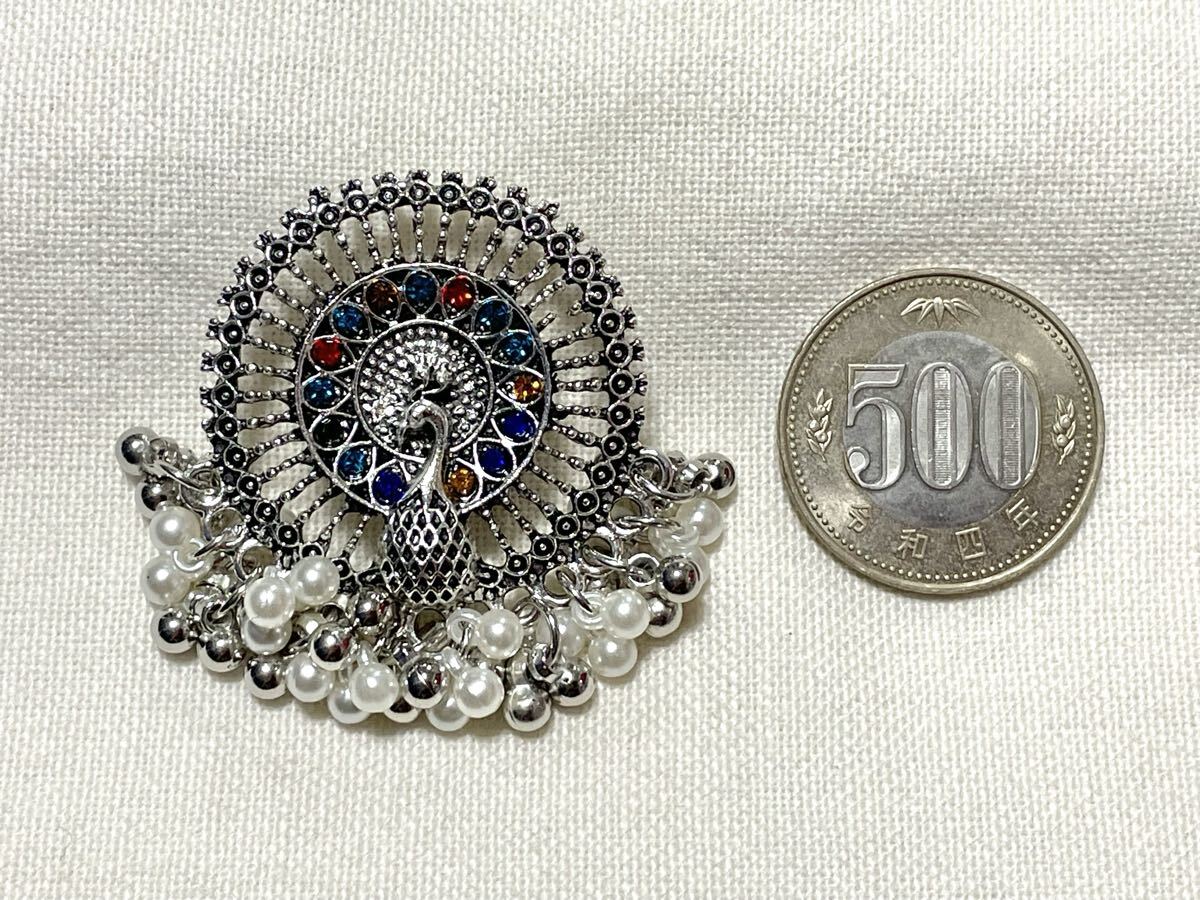 孔雀のアクセサリーを帯留めにリメイクしました。