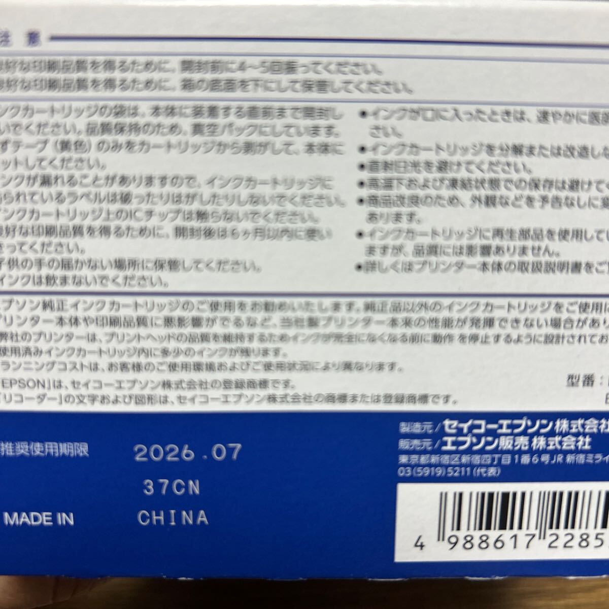 厚みの関係で、インクは箱から出して、真空パックのままプチプチにて包装し、箱は折りたたんで同封させていただきます。