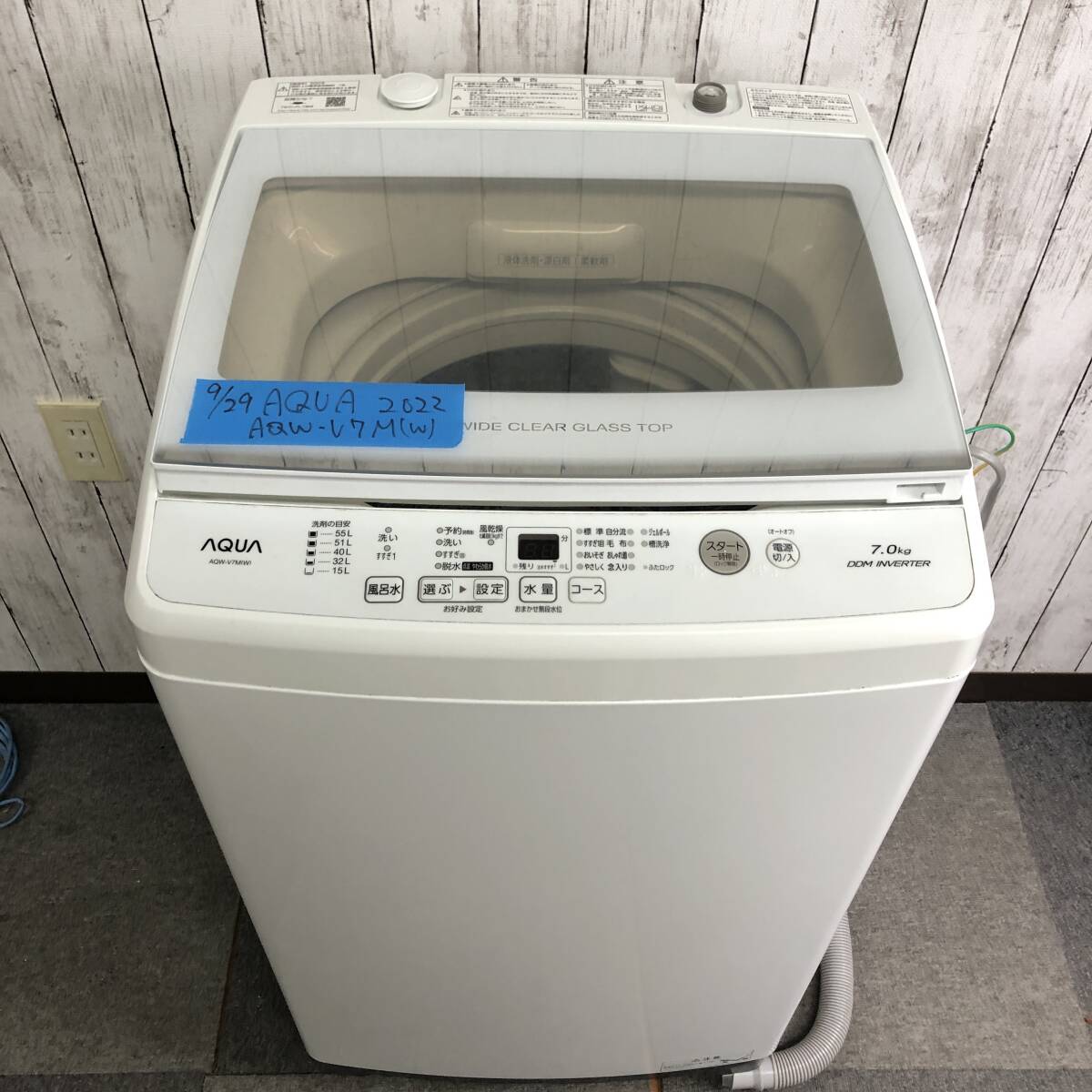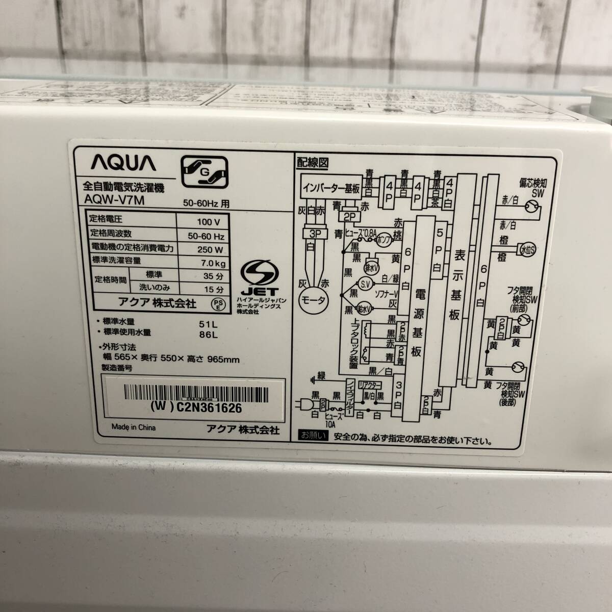 【美品】AQUA 全自動電気洗濯機 AQW-V7M 2022年製 引っ越し 一人暮らし 生活家電 家電 高年式 ホワイト 洗濯機 アクア H