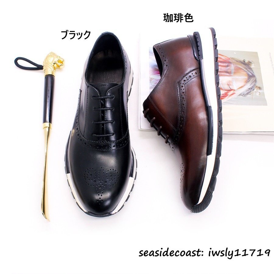 極美品*13万 スリッポン ローファー レザーシューズ ビジネスシューズ 本革 スニーカー 職人手作り 牛革 厚底 革靴 紳士靴 珈琲色 26.5cm