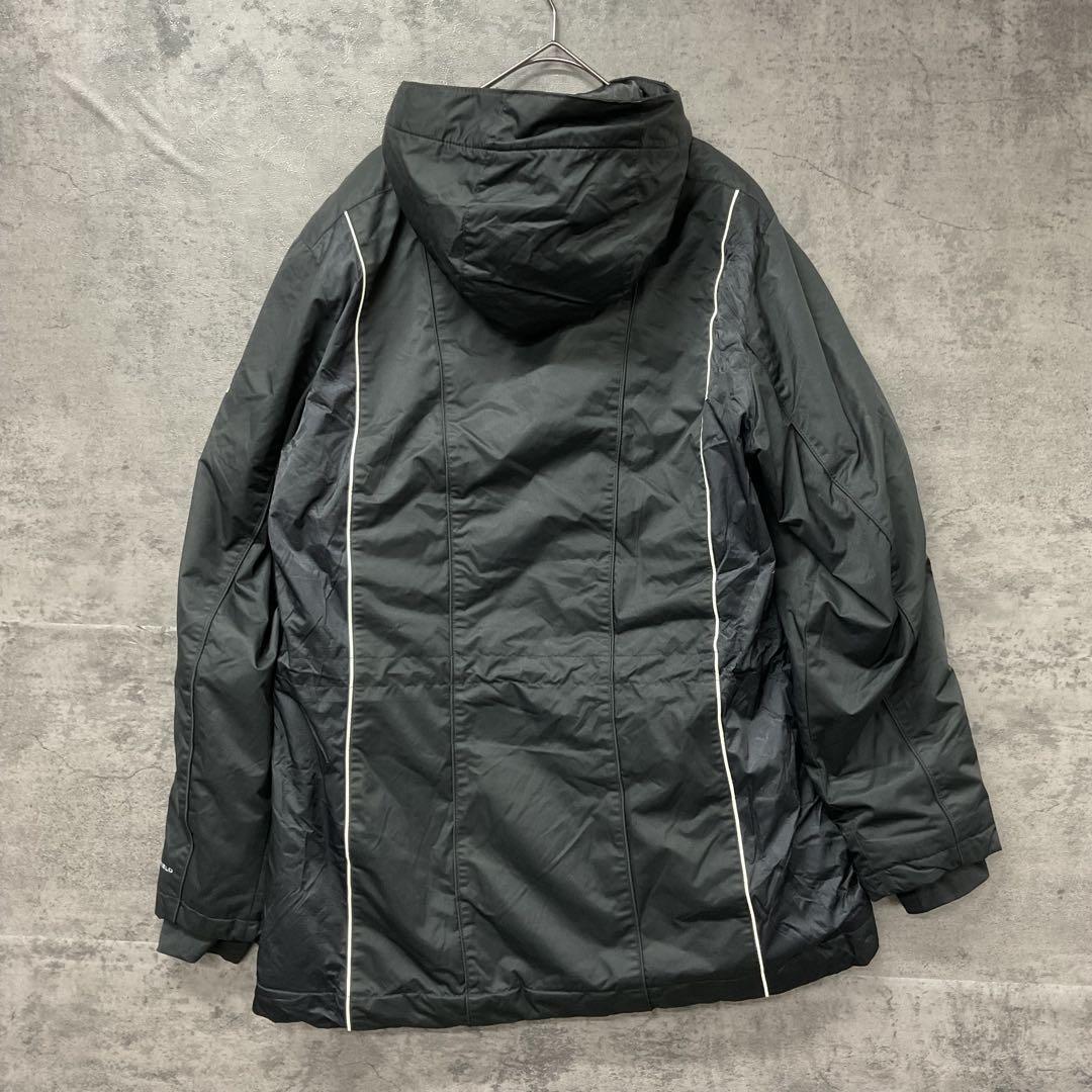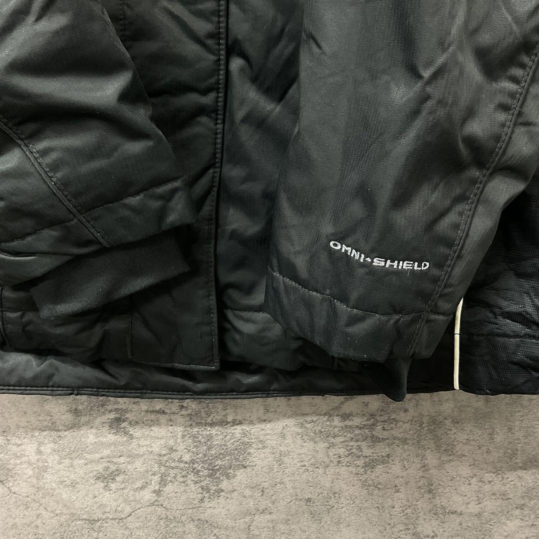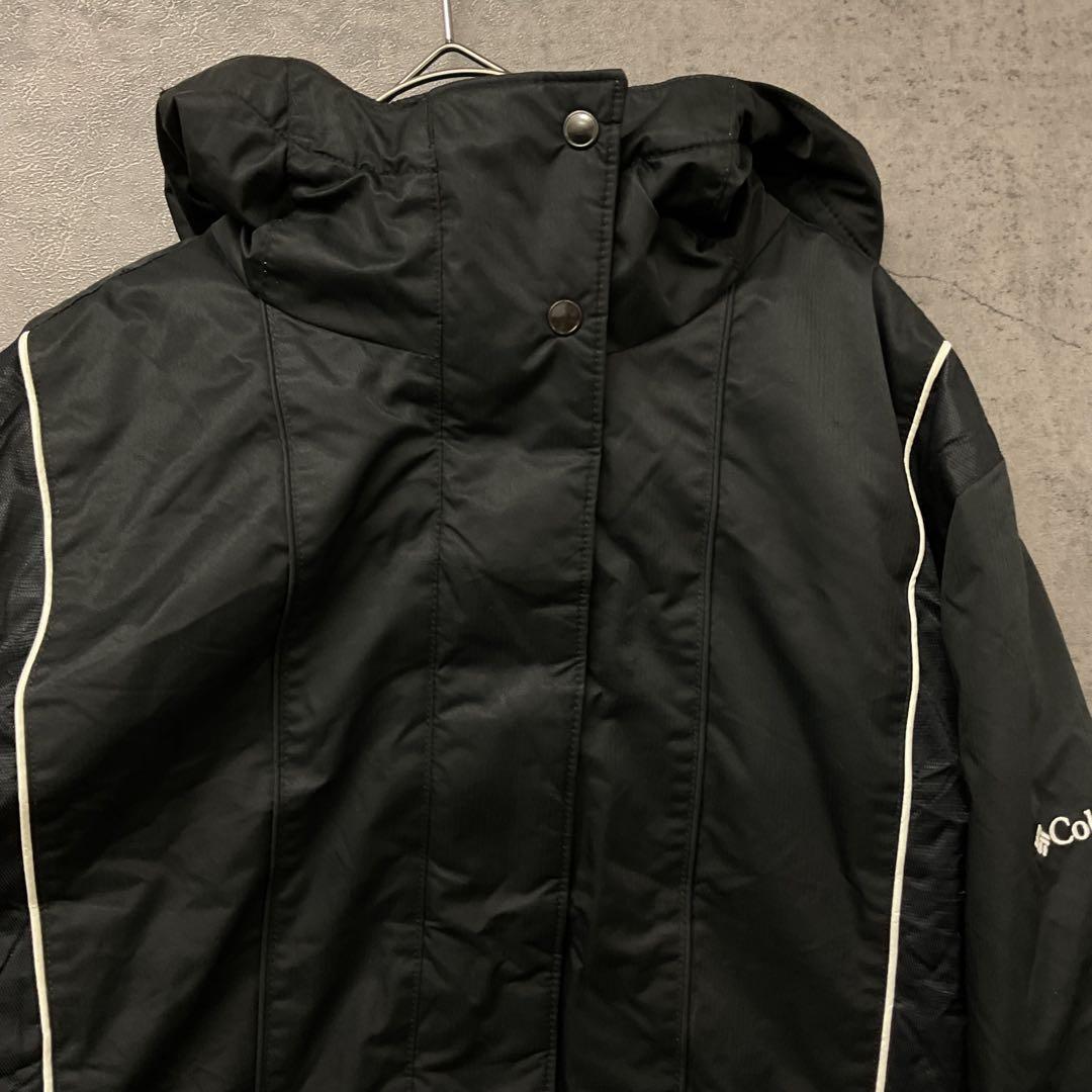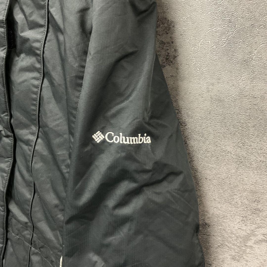 フード付きで中綿キルティング仕様のコロンビア黒ジャケットで、防寒性とアウトドアらしい機能性を兼ね備えた古着アウターとして活躍する一着です。