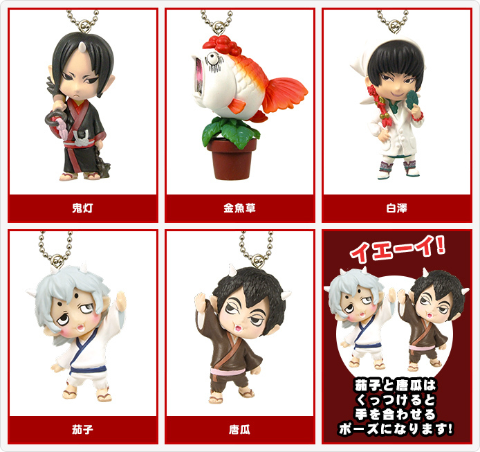 鬼灯がトレードマークである金棒も見事に再現されており、茄子と唐瓜はくっつけると手を合わせるポーズになります。 |