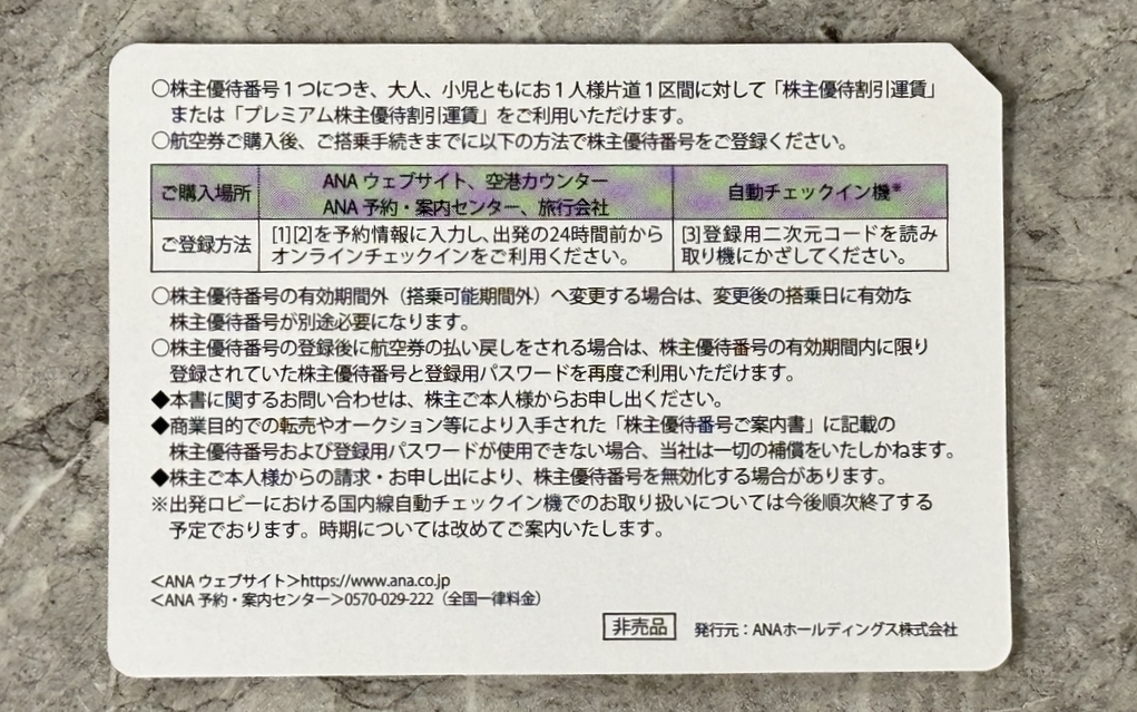 優待券の詳細については全日空ホームページでご確認下さい