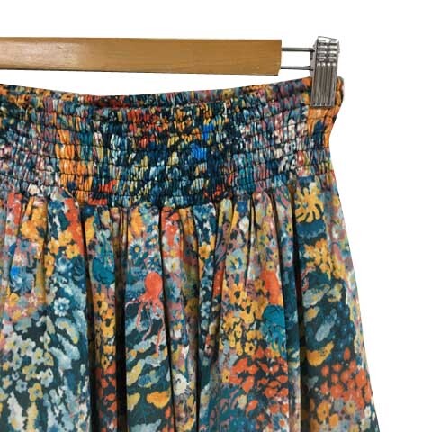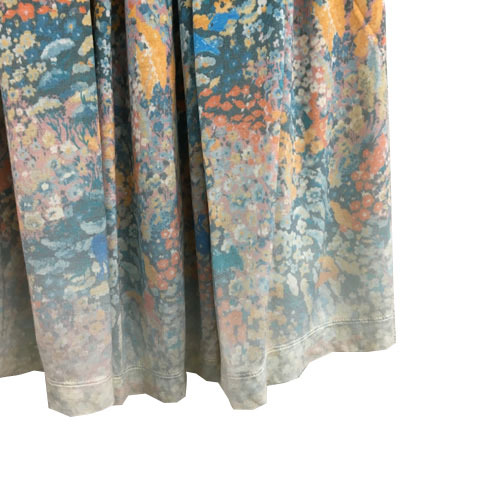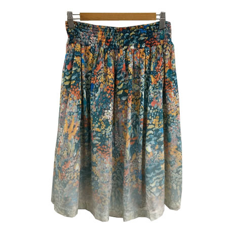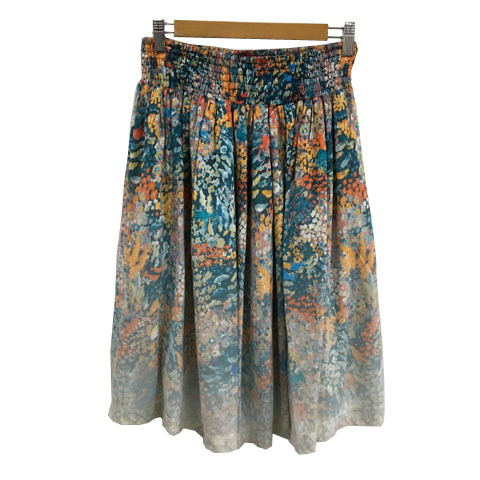 ツモリチサト スカート フレア ひざ丈 ウエストゴム マルチカラー グラデーション 総柄 2 緑 白 グリーン ホワイト レディース