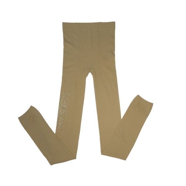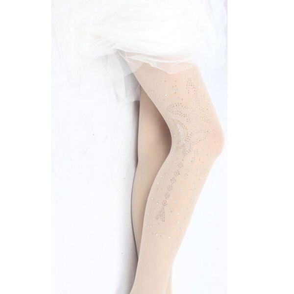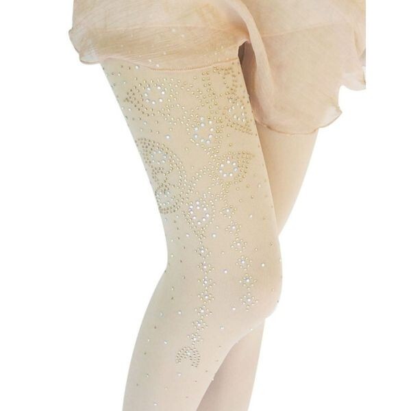 ラインストン付きトレンカ キラキラ 80デニール レディース フリーサイズ ベージュ 蝶蝶柄