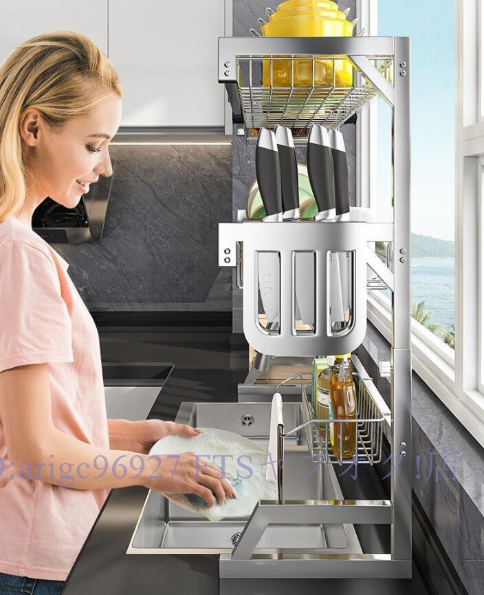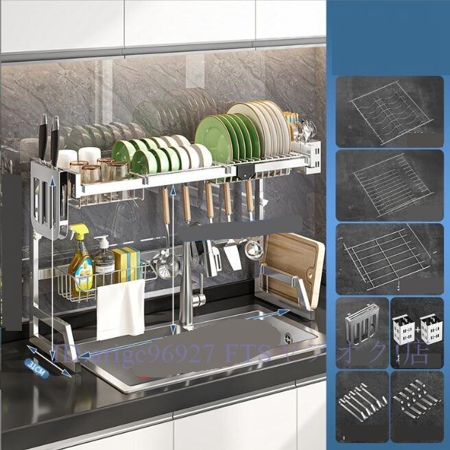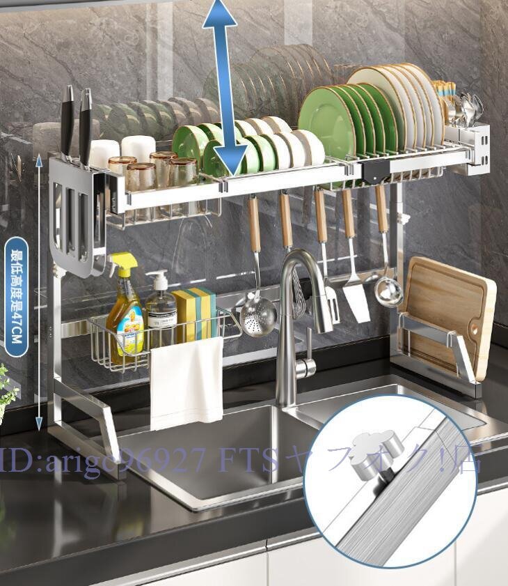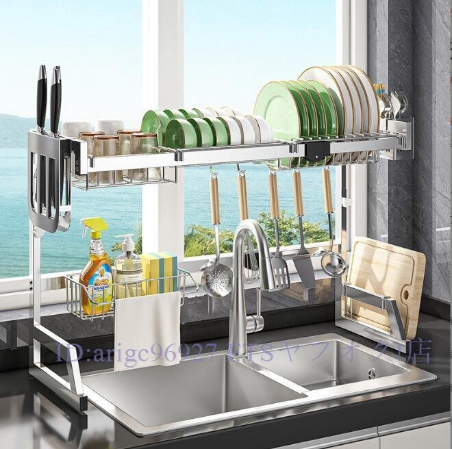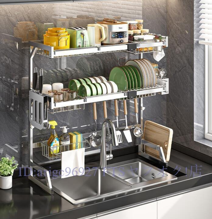 ★新品シンク上 伸縮式 水切りラック ステンレス 調整可能 大容量 滑り止め 省スペース キッチン 台所用品ホルダ BOX伸縮式 場所を取らない