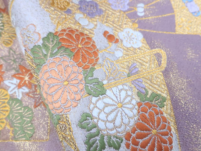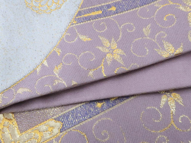 リサイクル商品の為、無地場折山薄汚れと着用じわがございますがご着用いただけると存じます。 地色は 紫です。 1枚目の画像が近いお色かと思われます。 素材は正絹です。 |