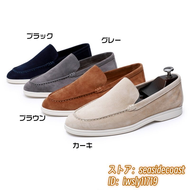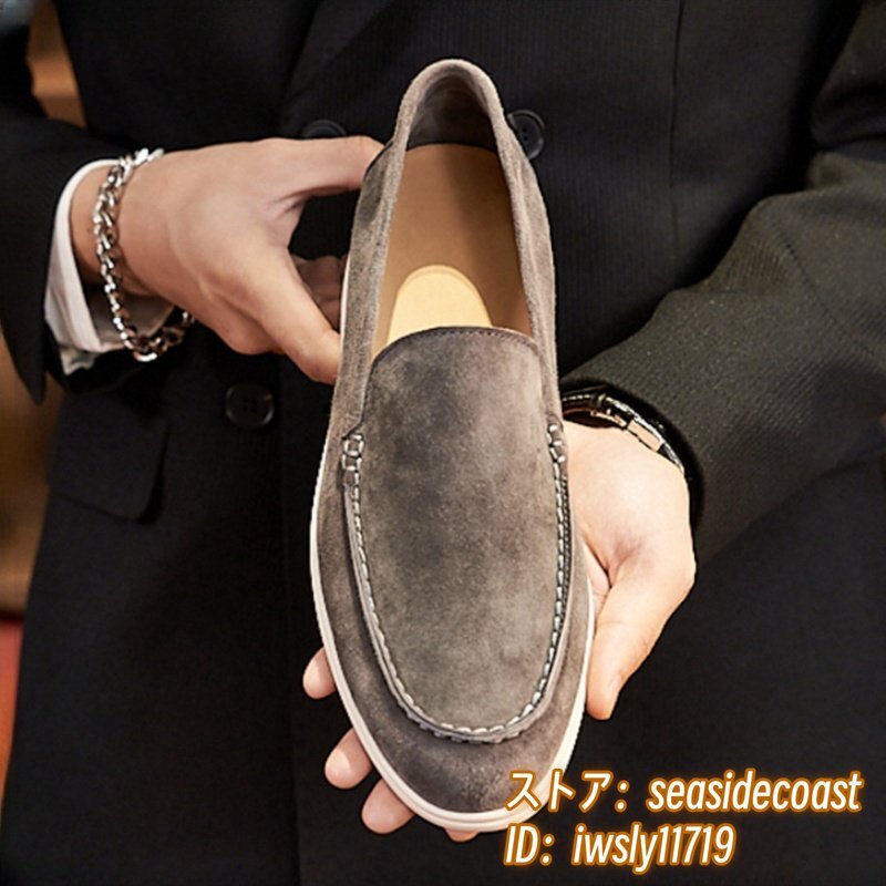 超希少■スエード革 ローファー 本革 スリッポン 職人手作り ドライビングシューズ ビジネスシューズ 牛革 革靴 紳士靴 グレー 25.5cm