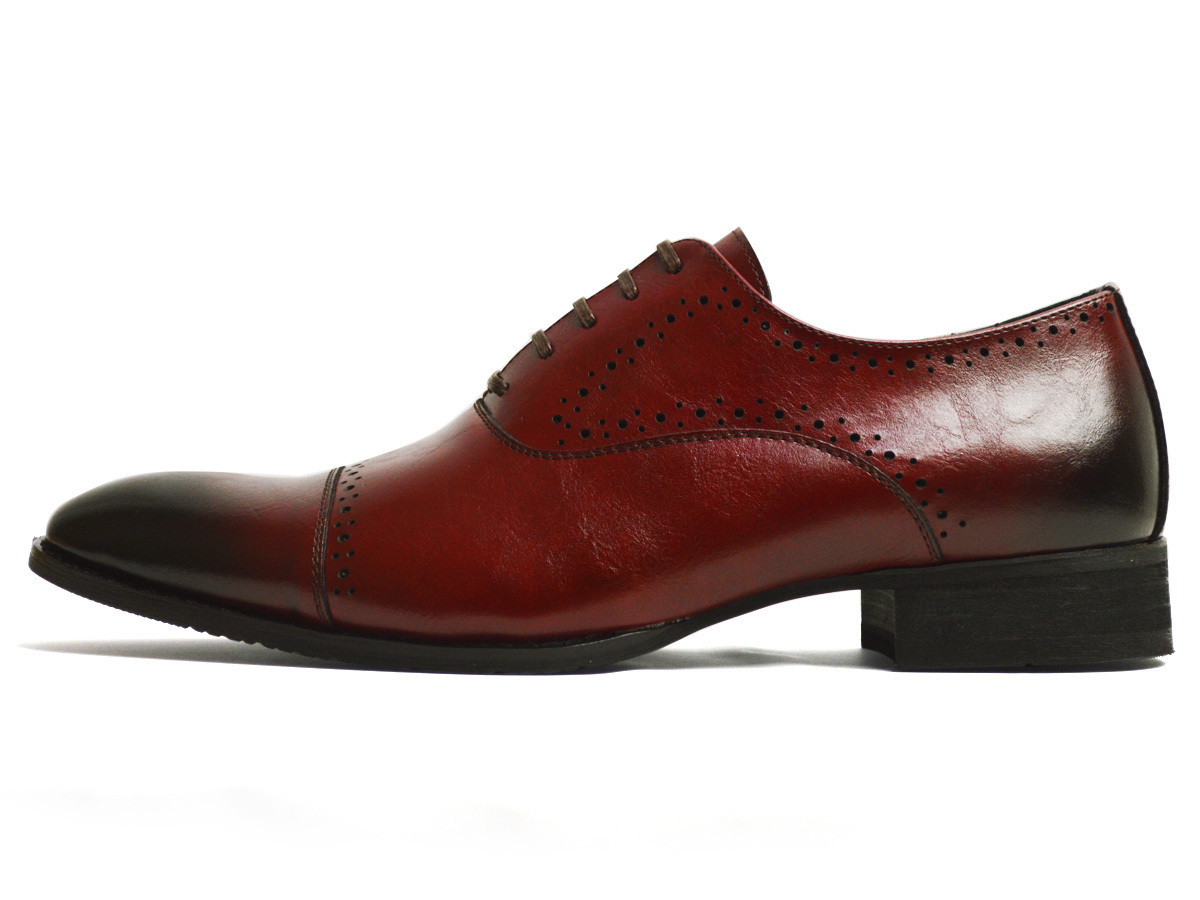 新品■25cm ビジネスシューズ メンズ 革靴 ドレスシューズ フォーマル イタリアンテイスト 紳士靴 ロングノーズ 黒 赤 レースアップ