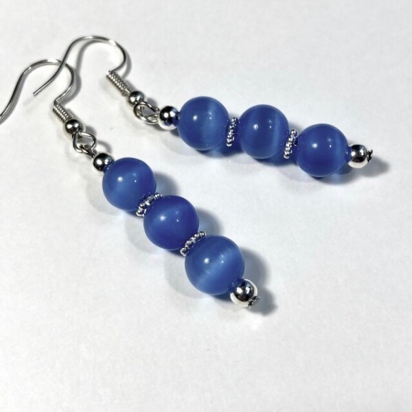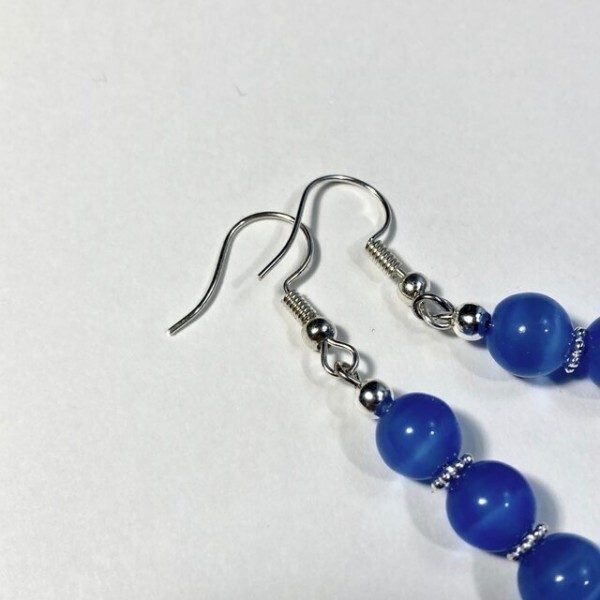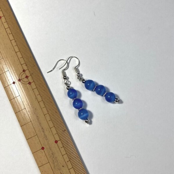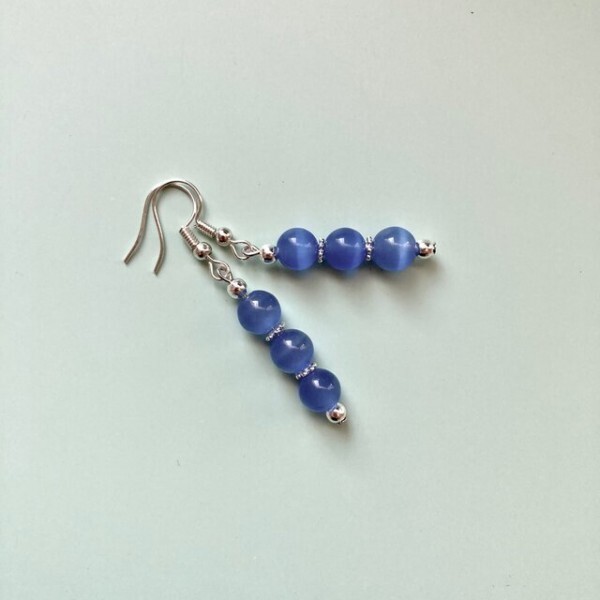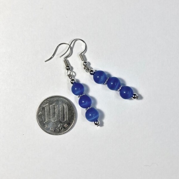 こちらは、8mm玉のキャッツアイを3個並べたフックピアスです。女性の可愛らしさを引き立ててくれるピアスになっております。シンプルなデザインですのでコーディネートにも合わせやすいデザインで、使い勝手がいいアイテムとなっております。