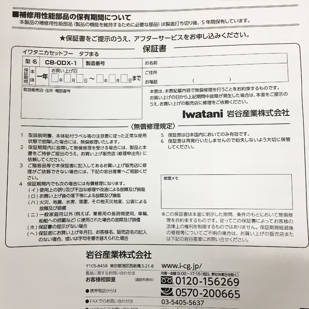 | 岩谷産業 カセットこんろ カセットフー タフまる CB-ODX-1-OL (30925090314348MI) JAN:4901140905377 *未使用品です。 *中身確認のため開封しました。 *付属するものは写真にあるもので全てです。 *パッケージ外側に、販売店発行の「保証書貼付用シール」があります。 購入日:2025年8月、保証期間:1年 保証書によると保証期間が残っていますが、リユース品のため弊社で取り次ぐことができません。 到着後1週間の、弊社 保証期間を過ぎ、かつ付属の保証書を利用する場合、 落札者様から販売店へお問い合わせください。 ※製品の仕様は写真にてご確認ください。 ※ガスは別売です。 | |