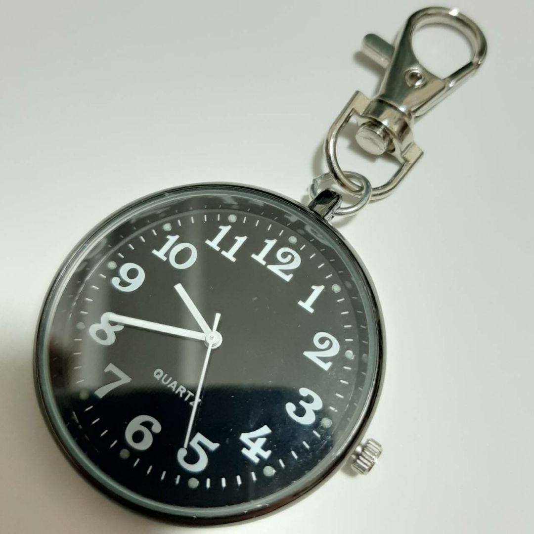 新品 未使用 時計 懐中時計 キーホルダー シンプル 黒 104