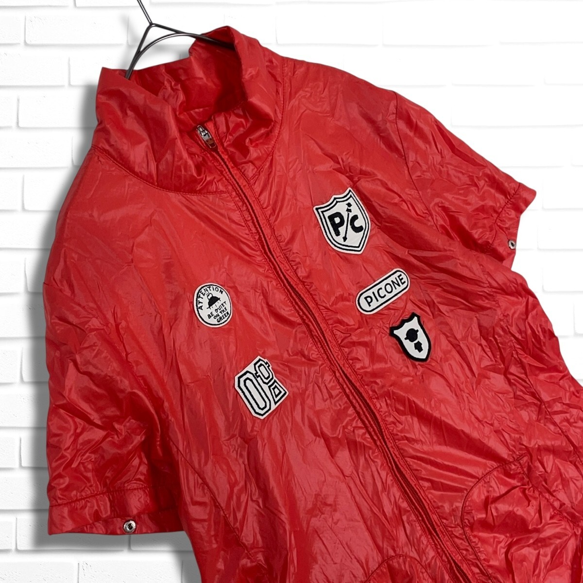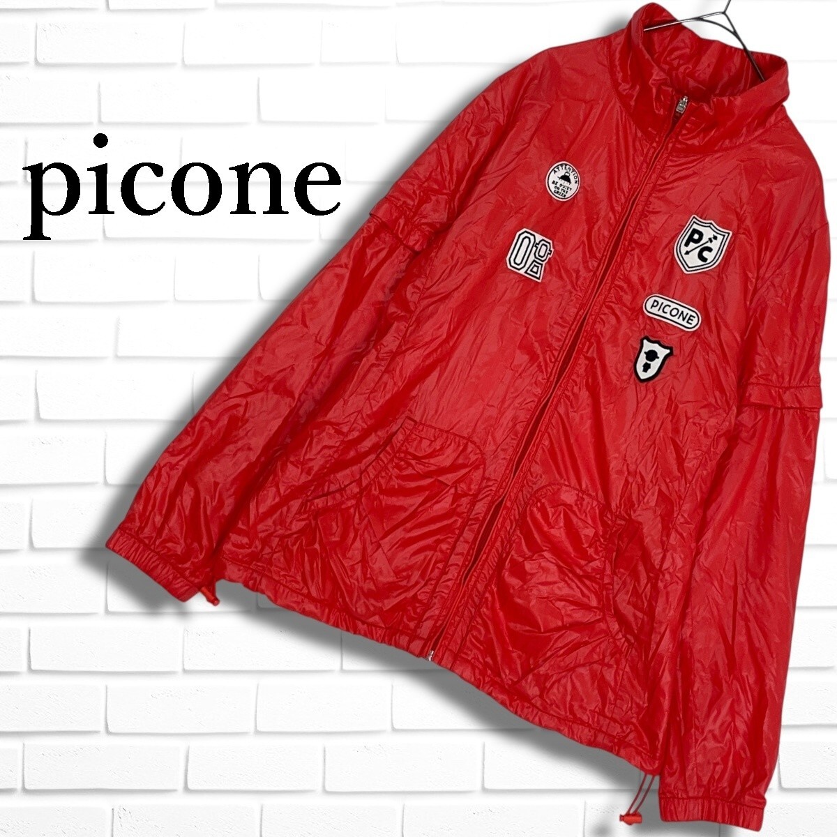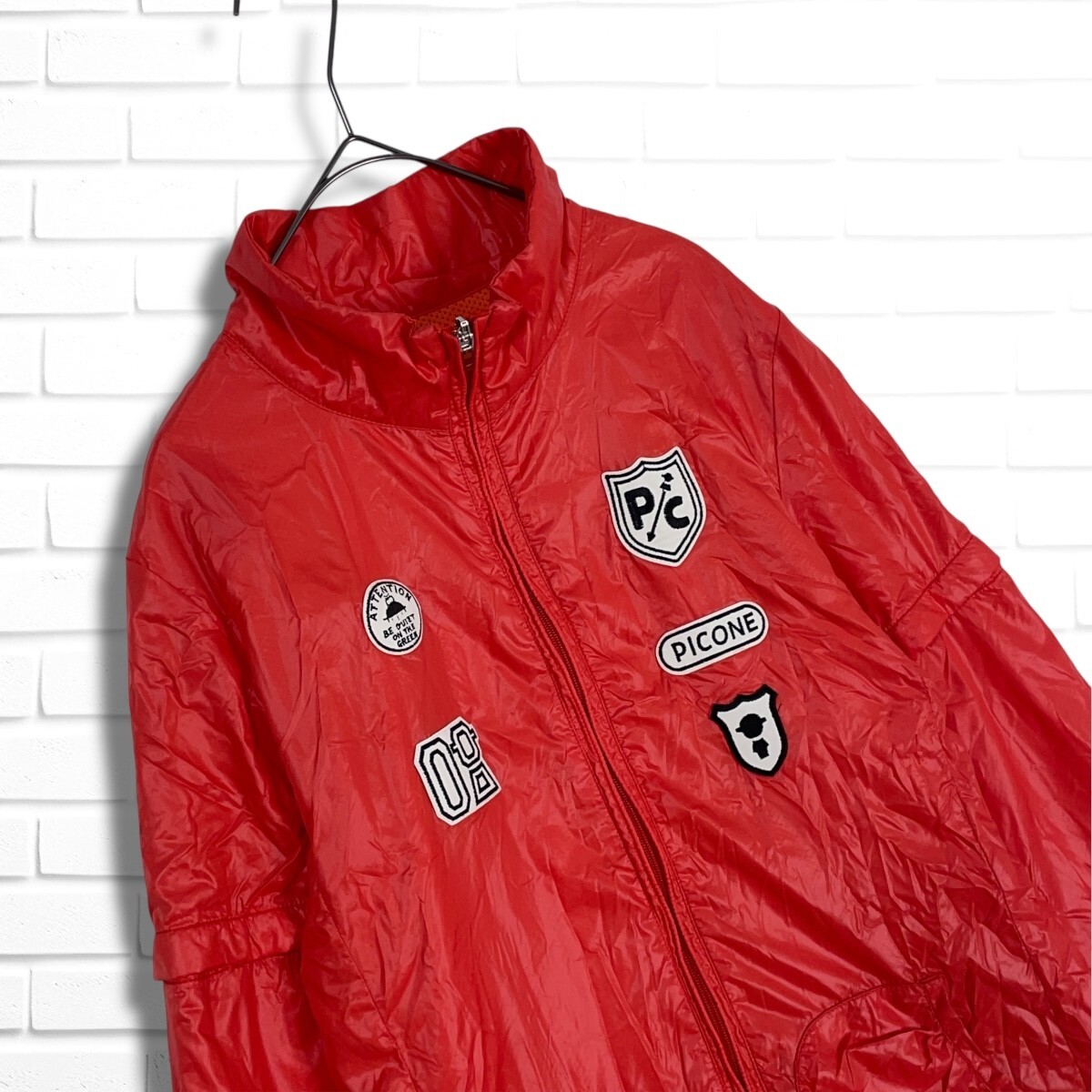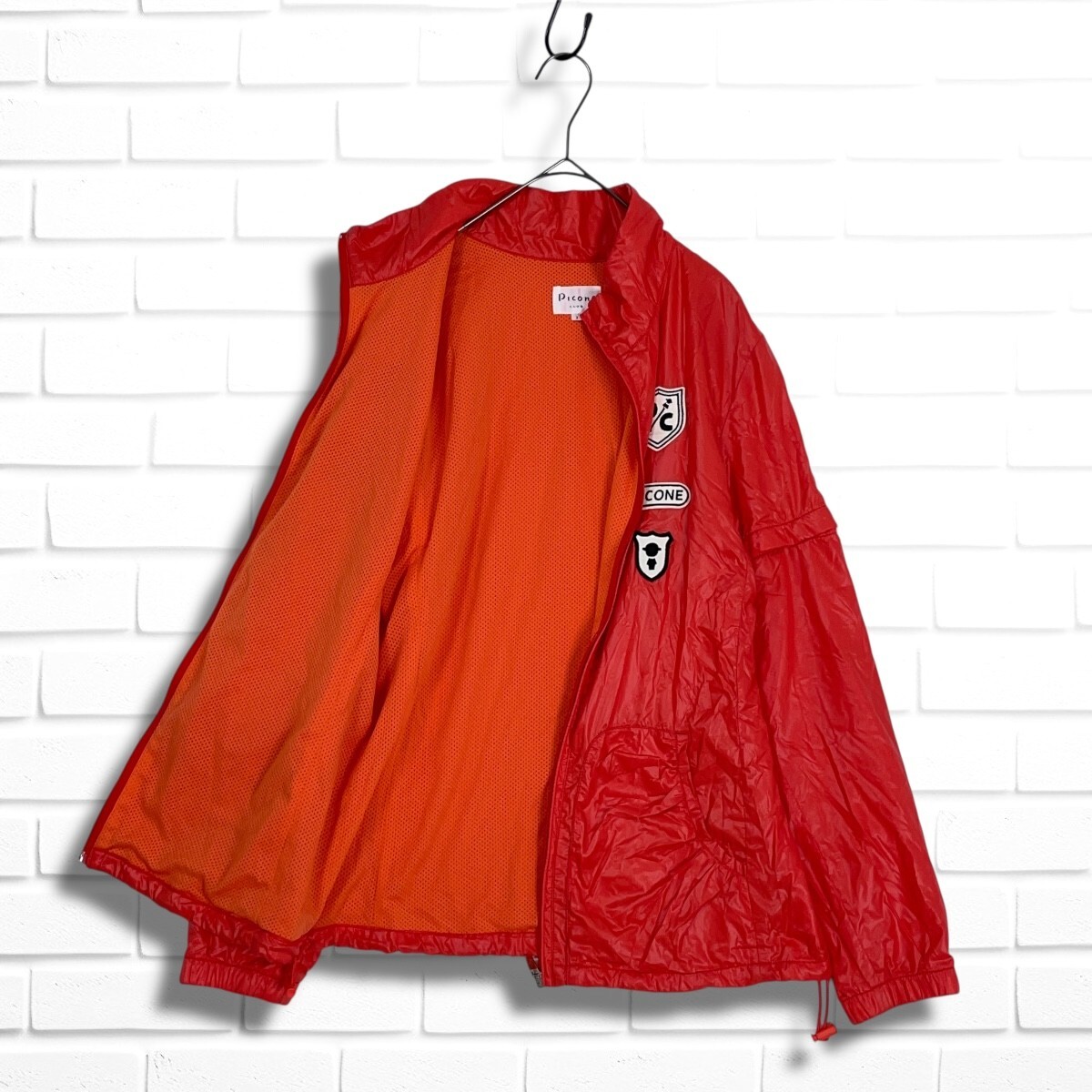 ◆美品◆ Picone CLUB ピッコーネ クラブ 2WAY ロゴ ワッペン 裏メッシュ ゆったり♪ ナイロン ジャケット ブルゾン レッド系 レディース 1 ◆送料無料◆ 5235I□