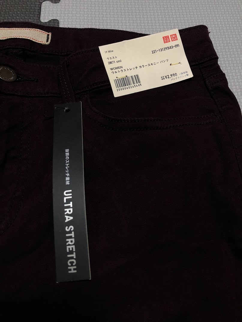 ユニクロ UNIQLO ウルトラストレッチ カラースキニーパンツ ウエスト28(71cm) ★未使用・タグ付き★ ワイン レディース