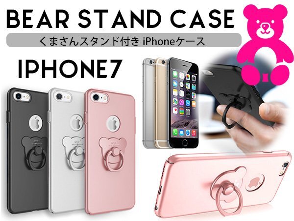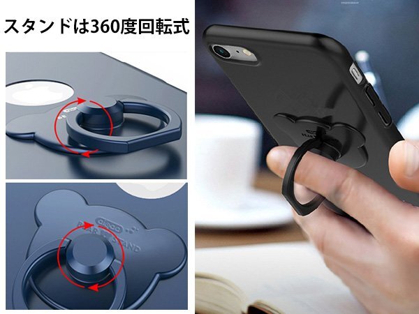 iPhone7ケース iPhone7カバー ハードケース クマリング リングスタンド付 ブラック/黒 『スマホスタンド 360度回転』