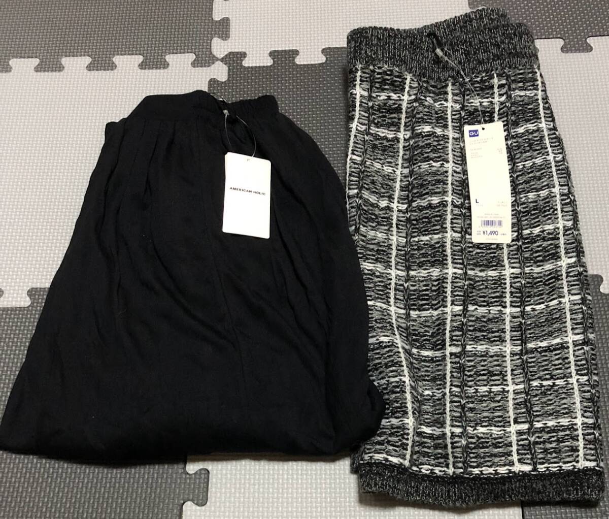 GU ジーユー ニットタイトスカート ツイードAW サイズL & AMERICAN HOLIC アメリカンホリック ミディカットプリーツスカート フリーサイズ