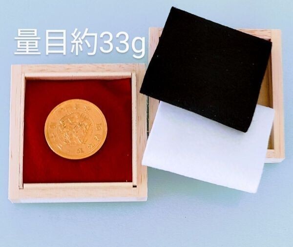 □ 約33g 旧20圓金貨 明治9年 木箱入り 近代金貨 貴重古銭 座布団の色は選択可