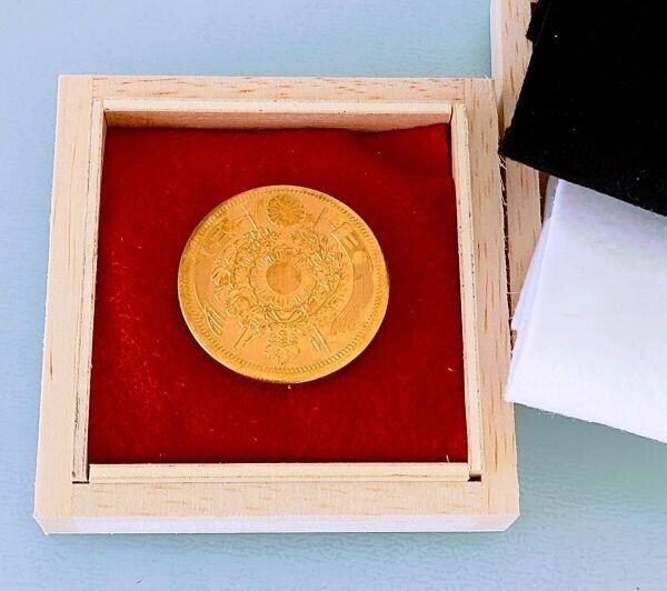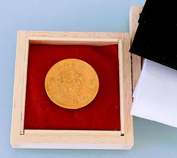 ☆ 旧20圓金貨 明治9年 木箱入り 希少近代古銭 カラー座布団選択可