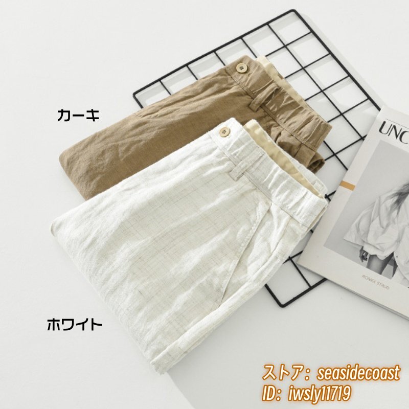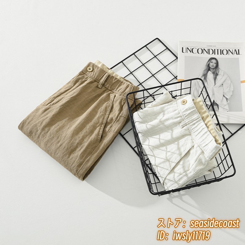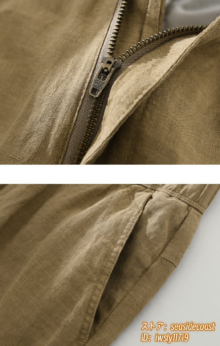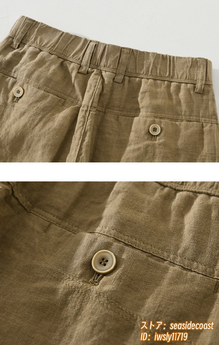 最高級 リネンパンツ 九分丈 麻100% 無地 通気性 スラックス ロングパンツ 清涼感 薄手 イージーパンツ チノパン 春夏 新品 カーキ 2XL