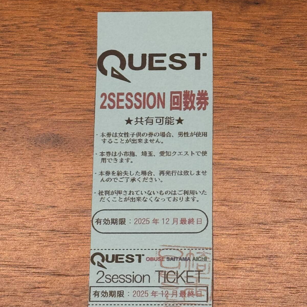 【送料無料】QUEST 2セッション券1枚 小布施・埼玉・愛知クエスト共通 2セッション券(男性)スノーボード オフトレ