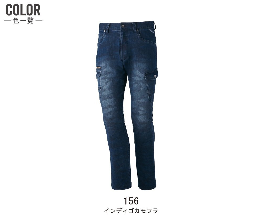 Z-DRAGON ジィードラゴン 秋冬 ストレッチ ノータック カーゴパンツ 伸縮性に優れたデニム素材 71602 色:インディゴカモフラ サイズ:85