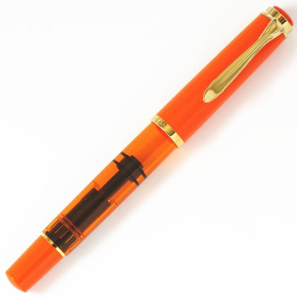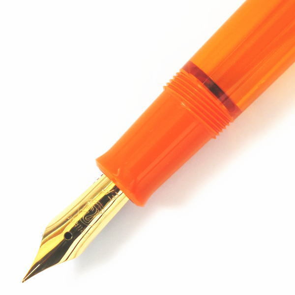 胴軸部にはピストンメカニズムやインク残量を見ることが出来る クリアオレンジを採用してます。