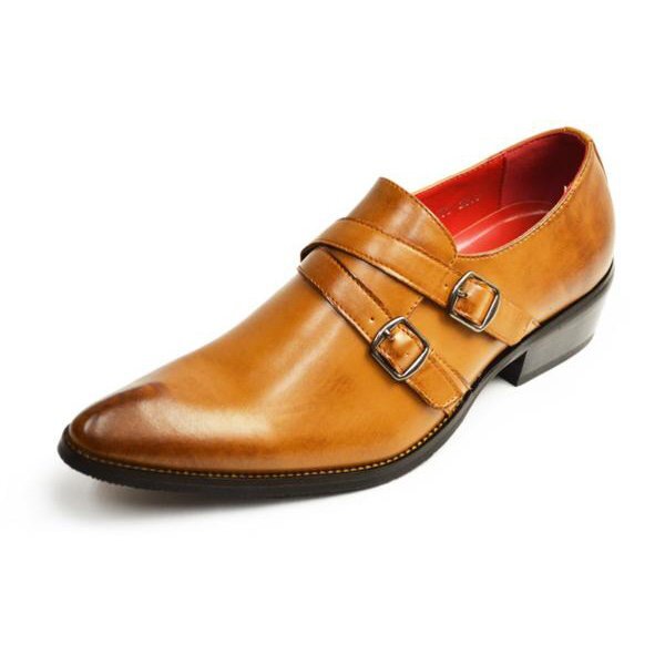 ビジネスシューズ 紳士靴 4.5cmヒール メンズ 革靴 モンクストラップ ベルト 脚長 フォーマル 冠婚葬祭 イタリアンデザイン ze1073
