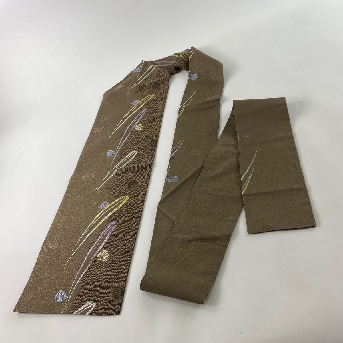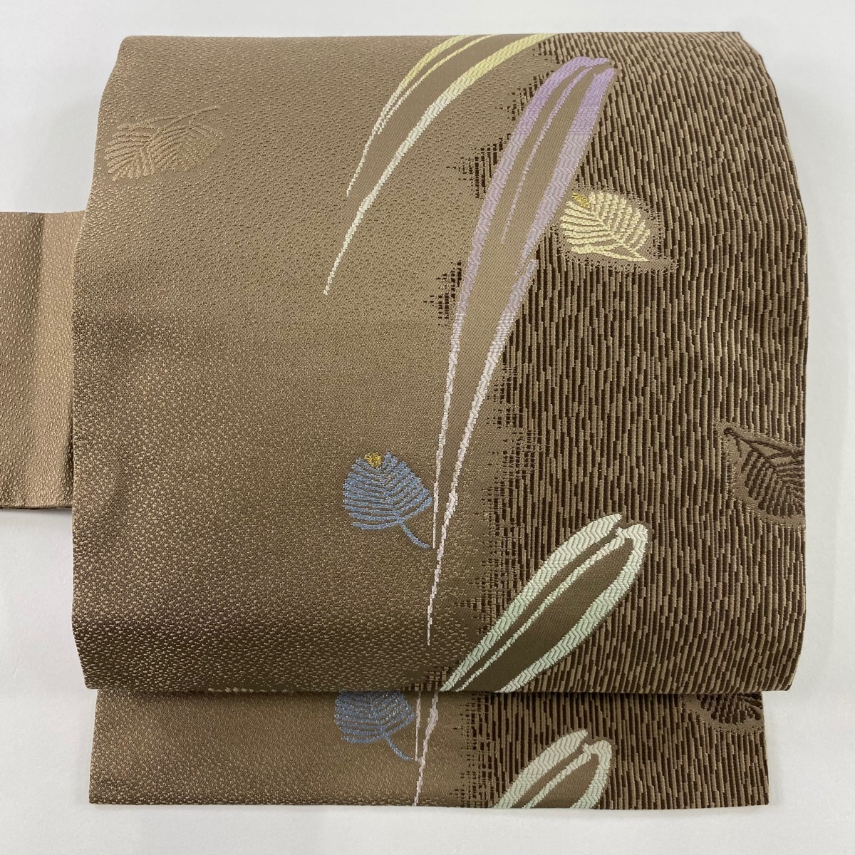 | 名古屋帯 美品 秀品 若松 笹の葉 金銀糸 茶色 正絹 【中古】 |