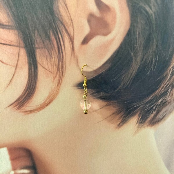 こちらは、8mm玉の水晶を使用した一粒フックピアスです。シンプルなデザインはシーン問わず、どんなコーディネートにも合わせ易く使い勝手がいいアイテムです。今回は一粒ピアスの要望が多かった為制作しました。気になる方は是非この機会にどうぞ。