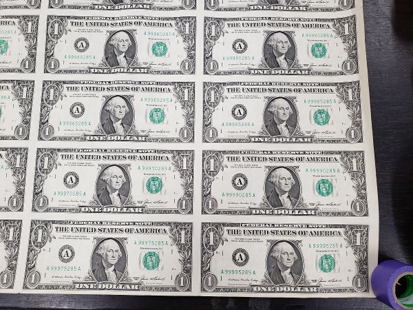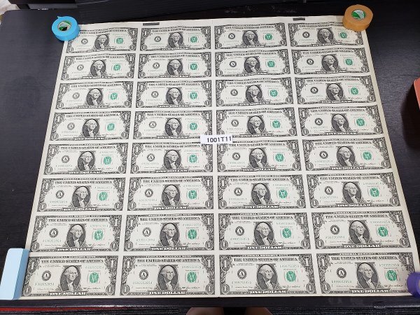 1001T11 アメリカ 未断裁 紙幣 ONE DOLLAR 1$ 32連
