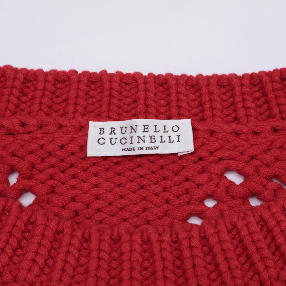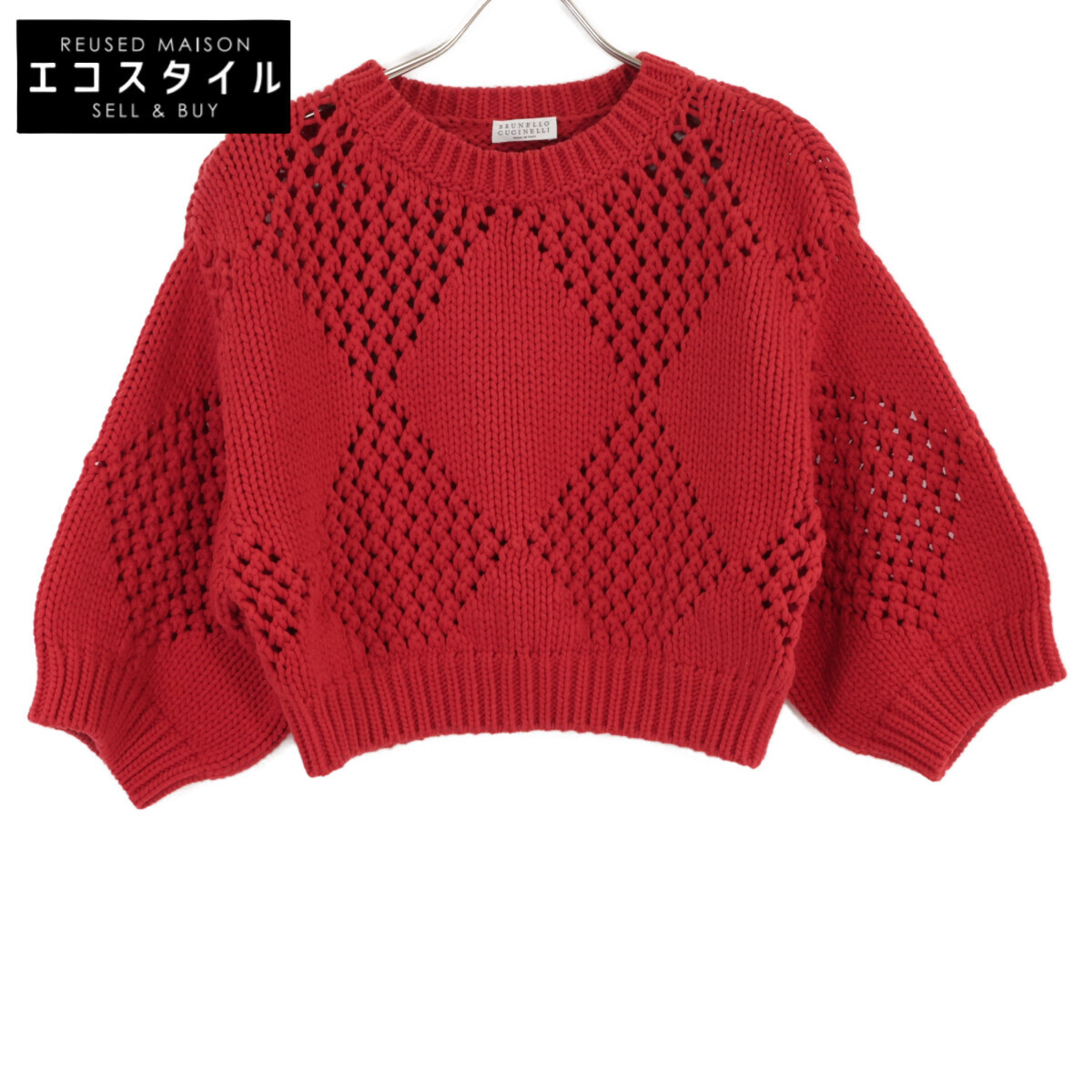 BRUNELLO CUCINELLI ブルネロクチネリ レッド クロップド丈 コットン ニット レッド S トップス コットン レディース 中古