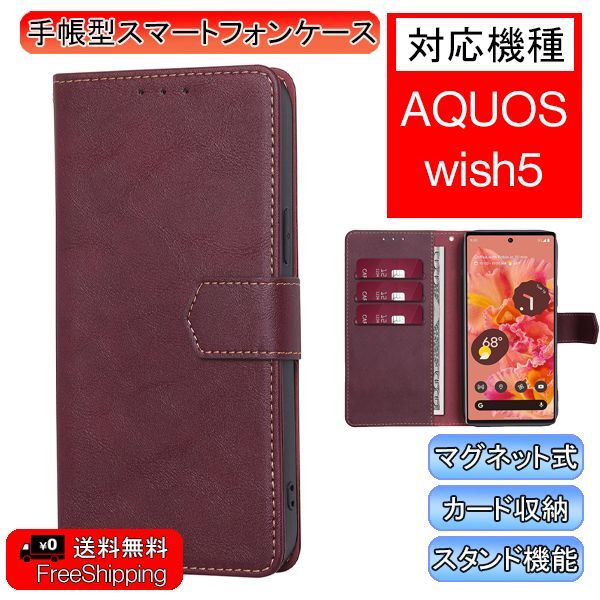 | 商品名 | AQUOS wish5 用 スマホケース アクオス ウィッシュ 手帳型 新品 レザー カード収納 携帯ケース シンプル 無地 ダークブラウン |