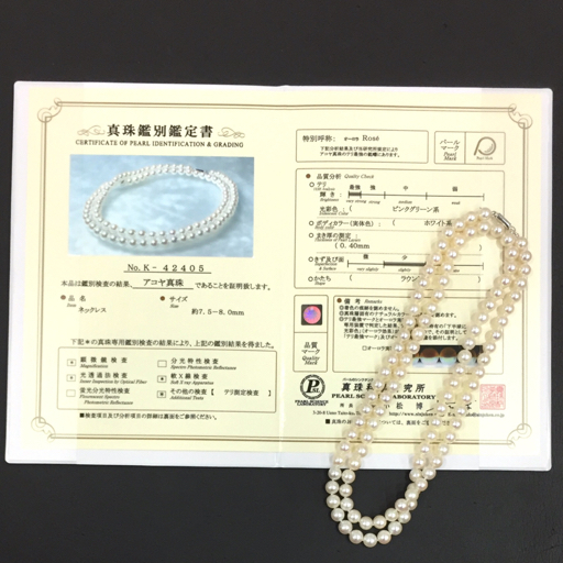 1円 留具 K18 WG パール 真珠 ロング ネックレス 直径約7.5~8mm アクセサリー 保存箱 真珠鑑別鑑定書付き A20836 |