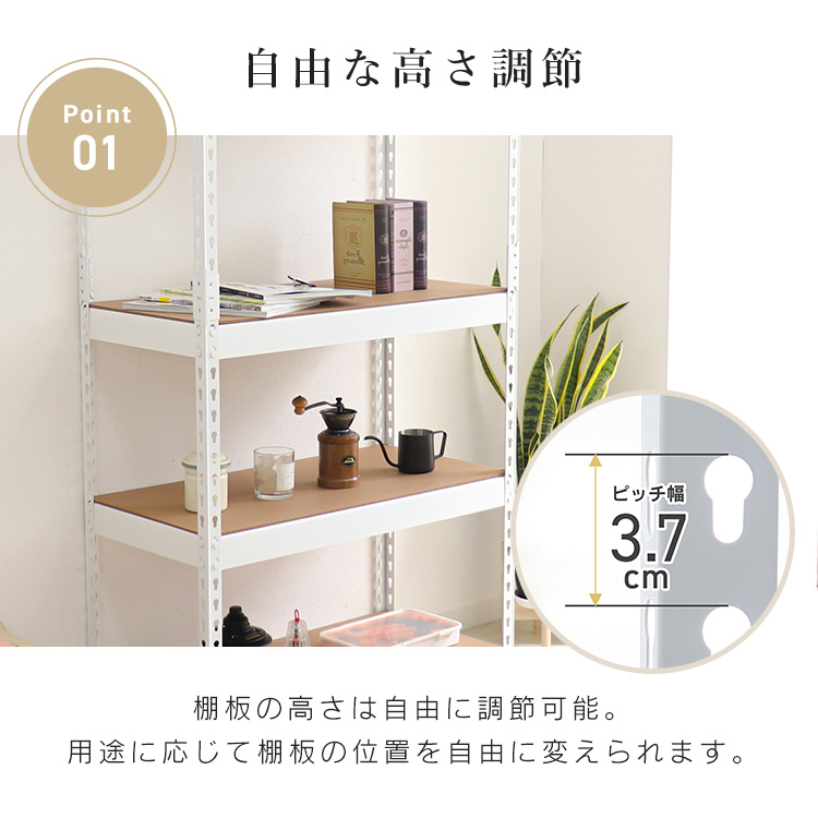 棚板は軽量で丈夫なMDFボード!軽量で乾燥や湿気による変形が少ないのが特徴です。