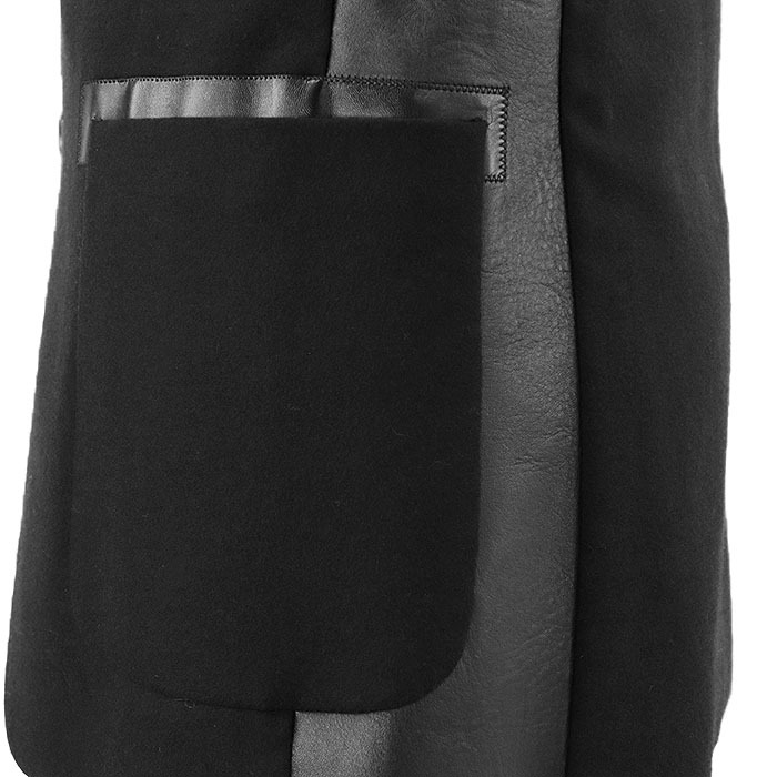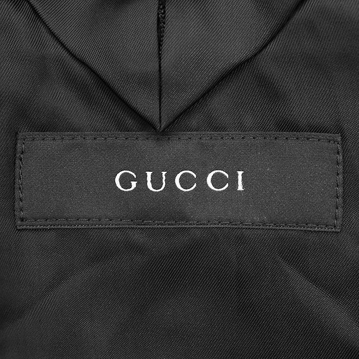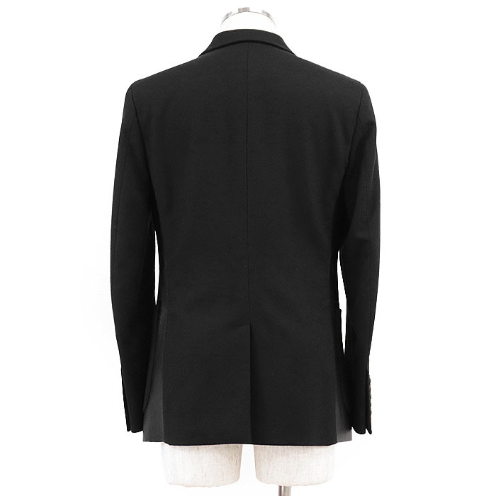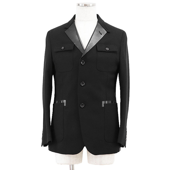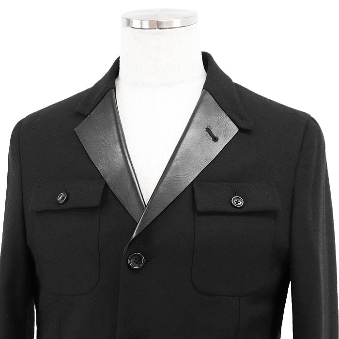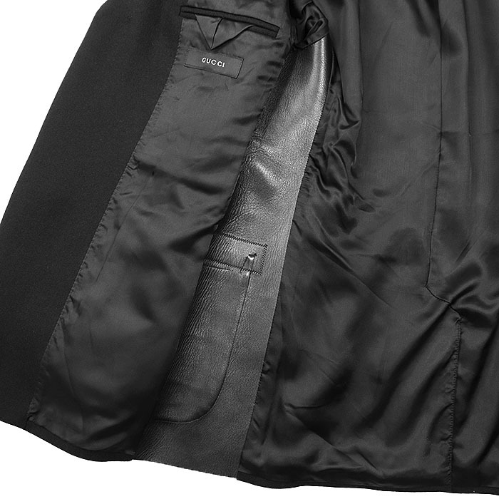 シリーズGUCCI グッチ テーラードジャケット パッチワーク サファリ レザー 切り替え 3B ウール混 ストレッチ メンズ 46R 黒 伊製