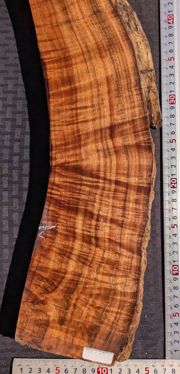 KOA-209 超目玉出品・送料無料・希少5Aカーリー ハワイアンコア・ハワイ島の供給業者から直送・再植林プロジェクトの一環  とても美しい色合い