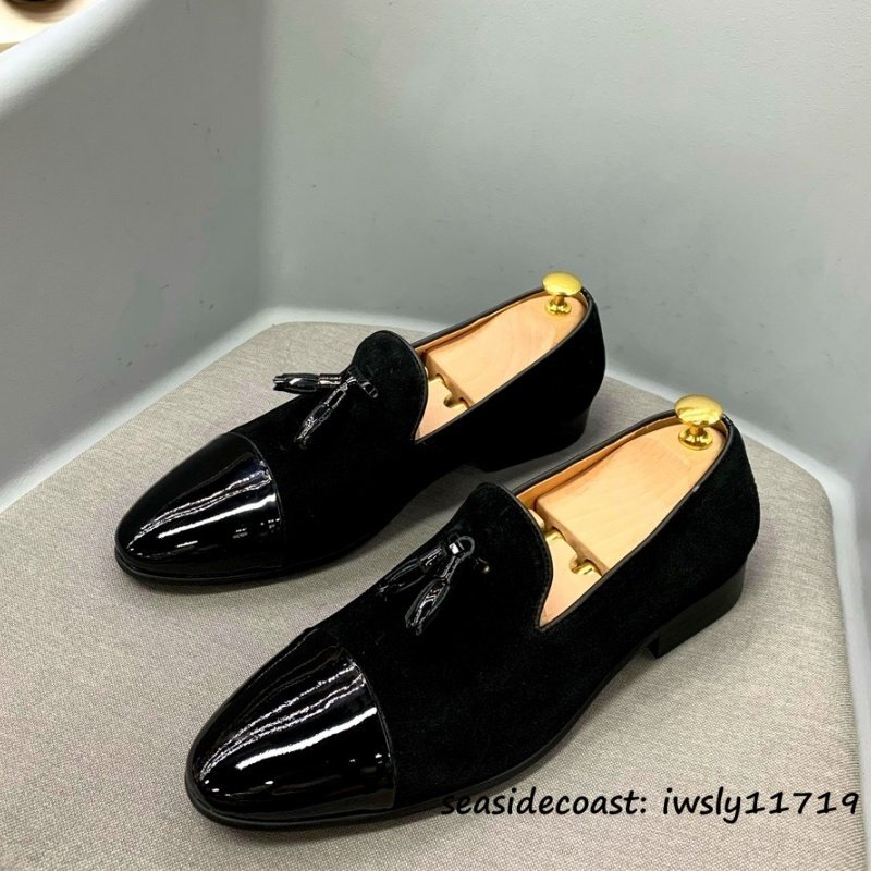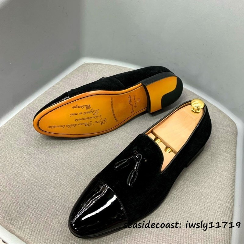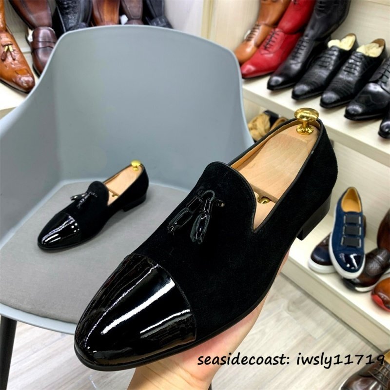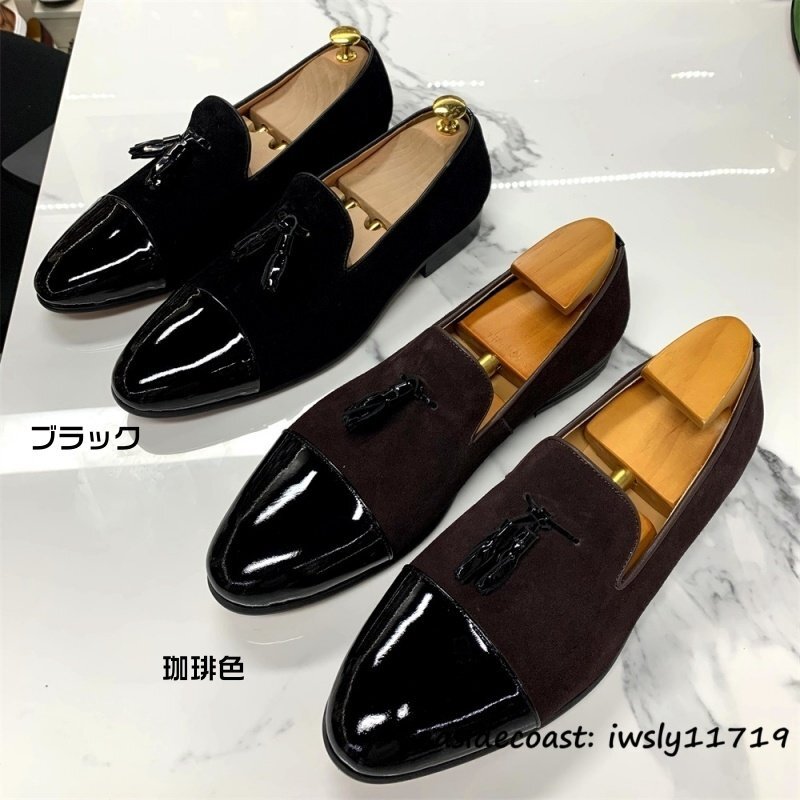 定価9万★スエード革 メンズ 本革レザーシューズ 職人手作り ビジネスシューズ 紳士靴 牛革革靴 結婚式 超希少 ローファー ブラック 25.0cm