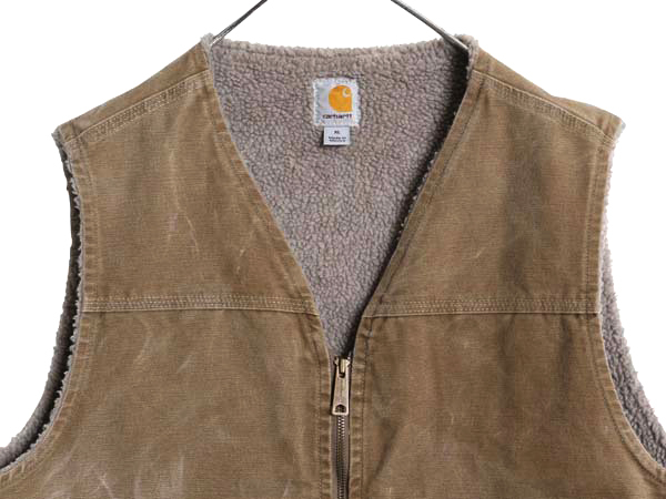 | 商品名 | US企画 カーハート ダック ベスト メンズ XL / 裏 ボア パイル フリース 重ね着 前開き フルジップ ワーク 廃盤 ワンポイント 大きいサイズ |